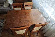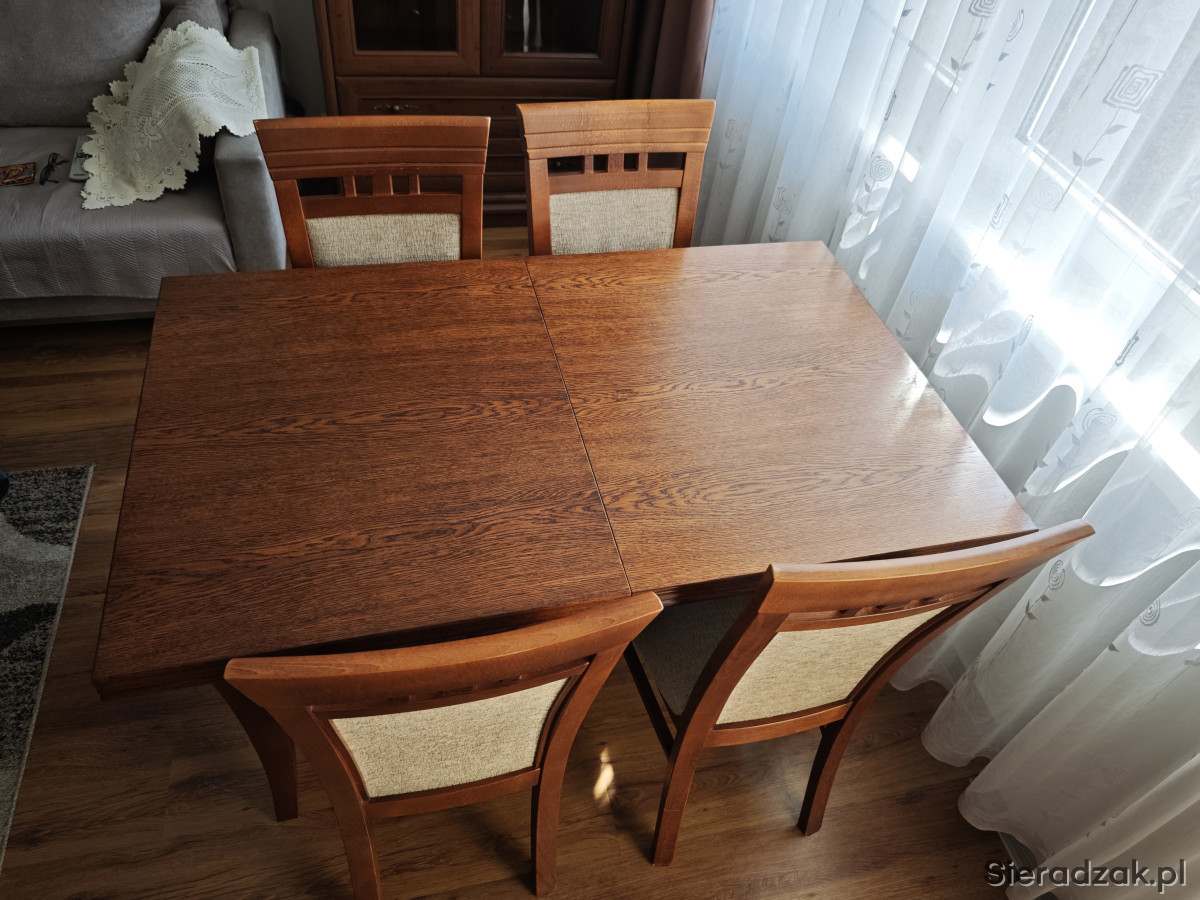 Możliwość sprzedaży z porządnym drewnianym stołem i czterema krzesłami w komplecie.