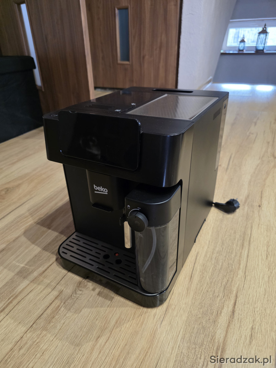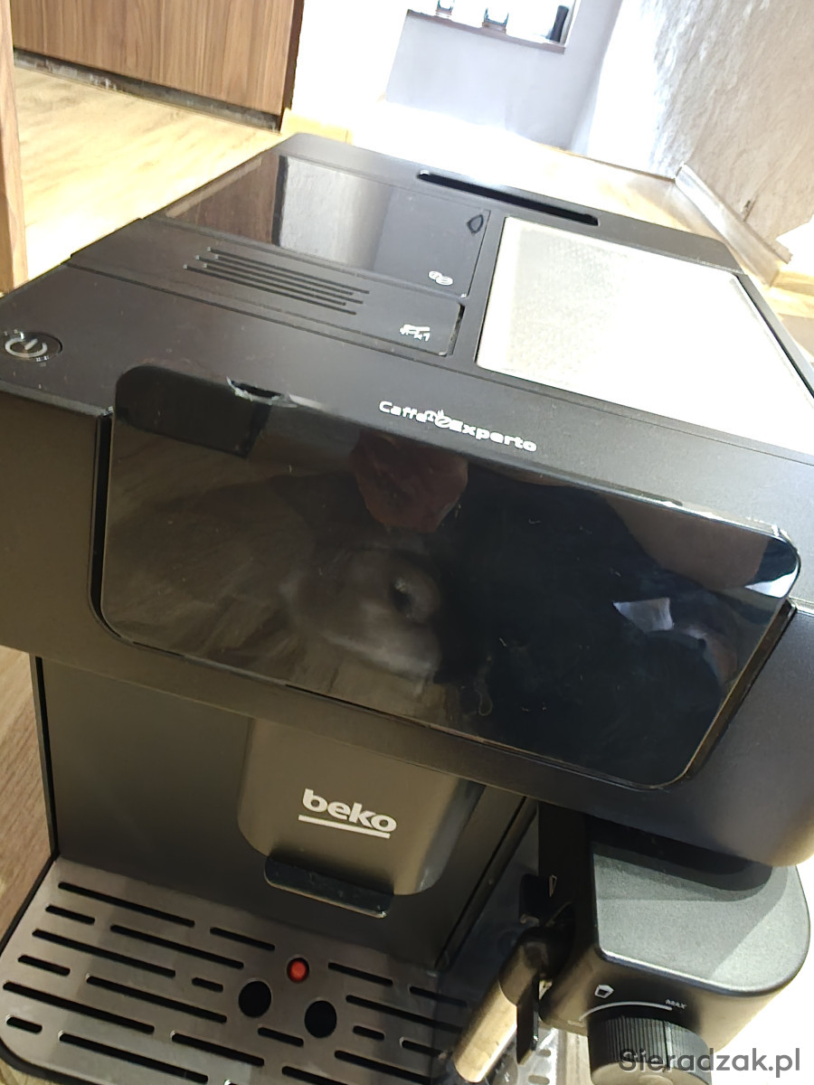 Sprzedam ekspres beko Caffe Experto CE7500. Użyty kilka razy, sprawny. Jedyny widoczny ślad użytkowania to delikatnie pęknięty i w jednym miejscu zarysowany ekran, ale nie przeszkadza w użytkowaniu. Wada widoczna na zdjęciu.