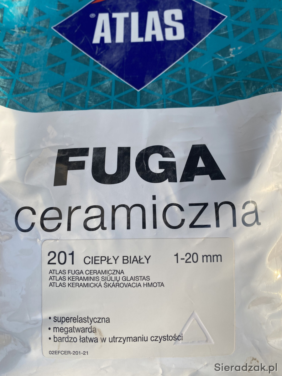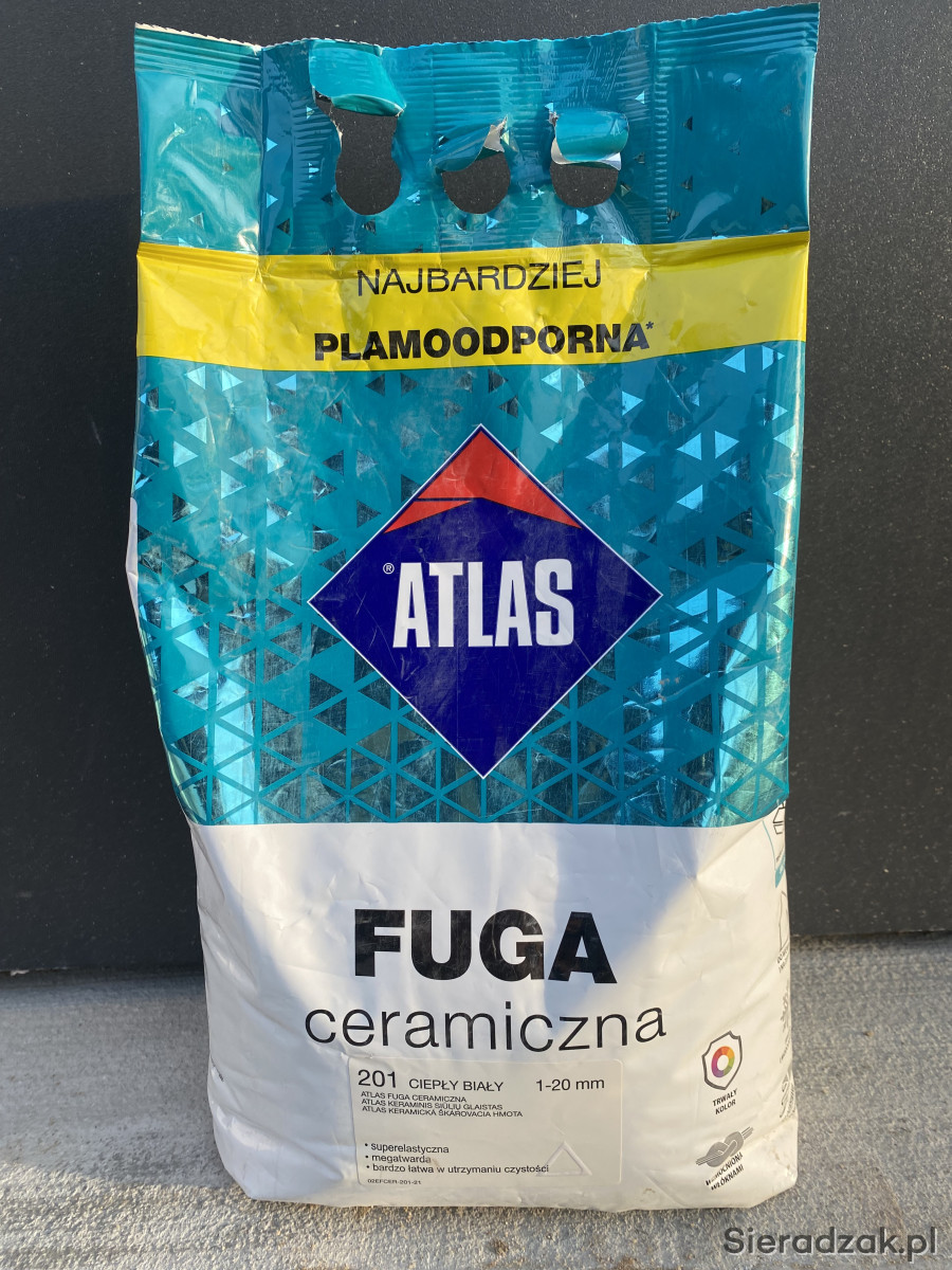 Sprzedam kilka worków fugi ceramicznej Atlas 5kg w kolorze ciepły biały. Cena za jeden worek.