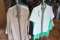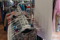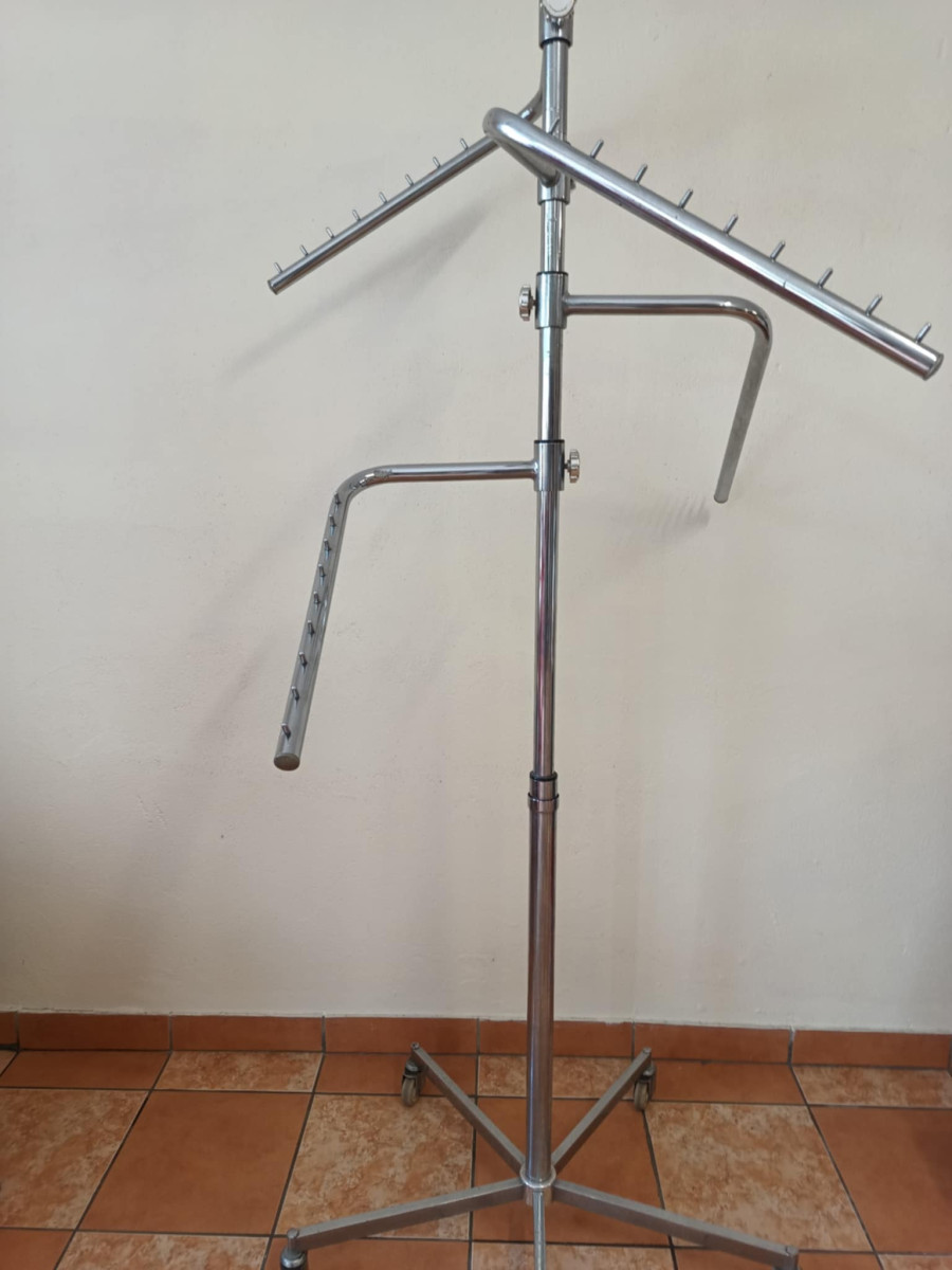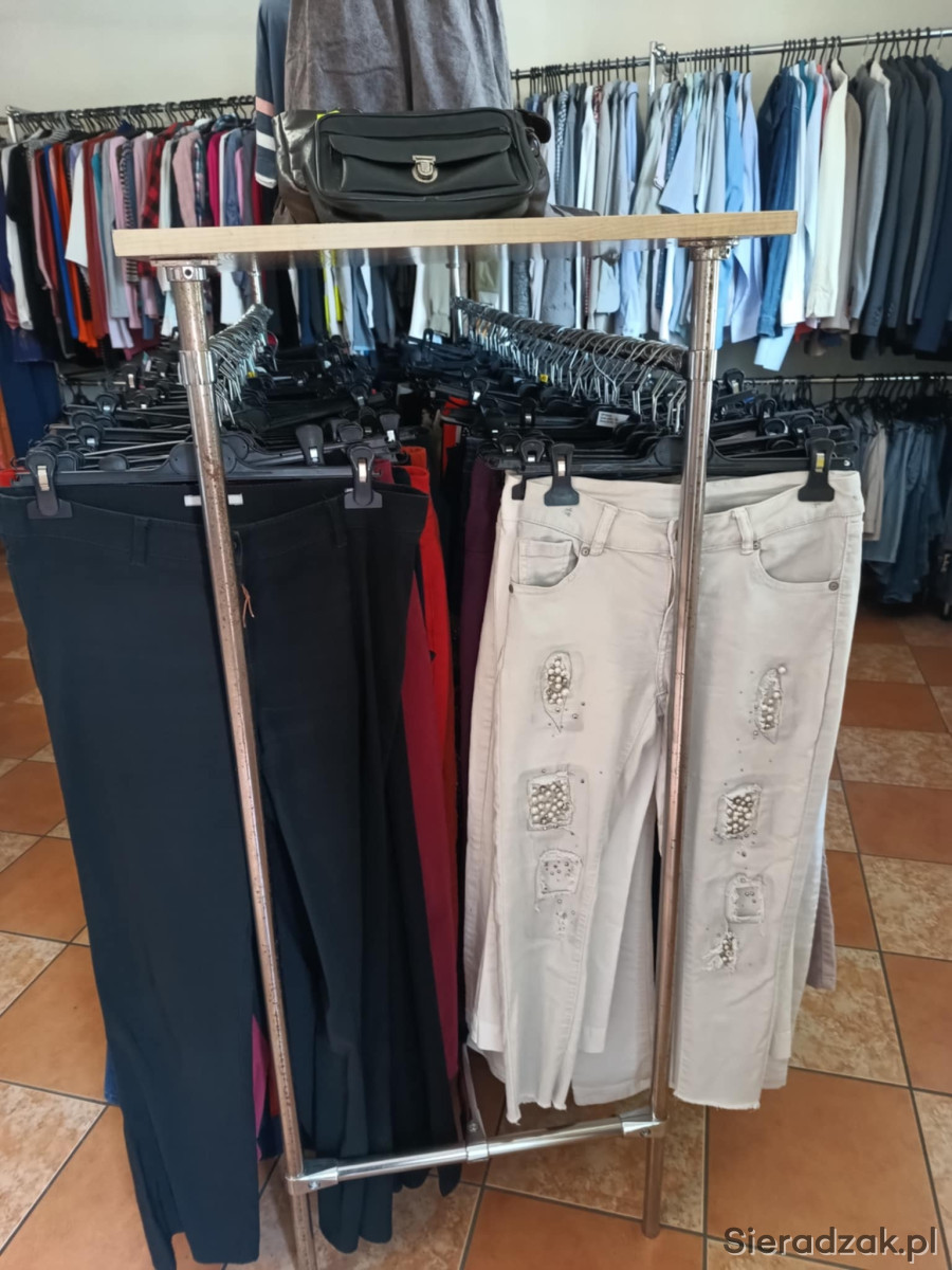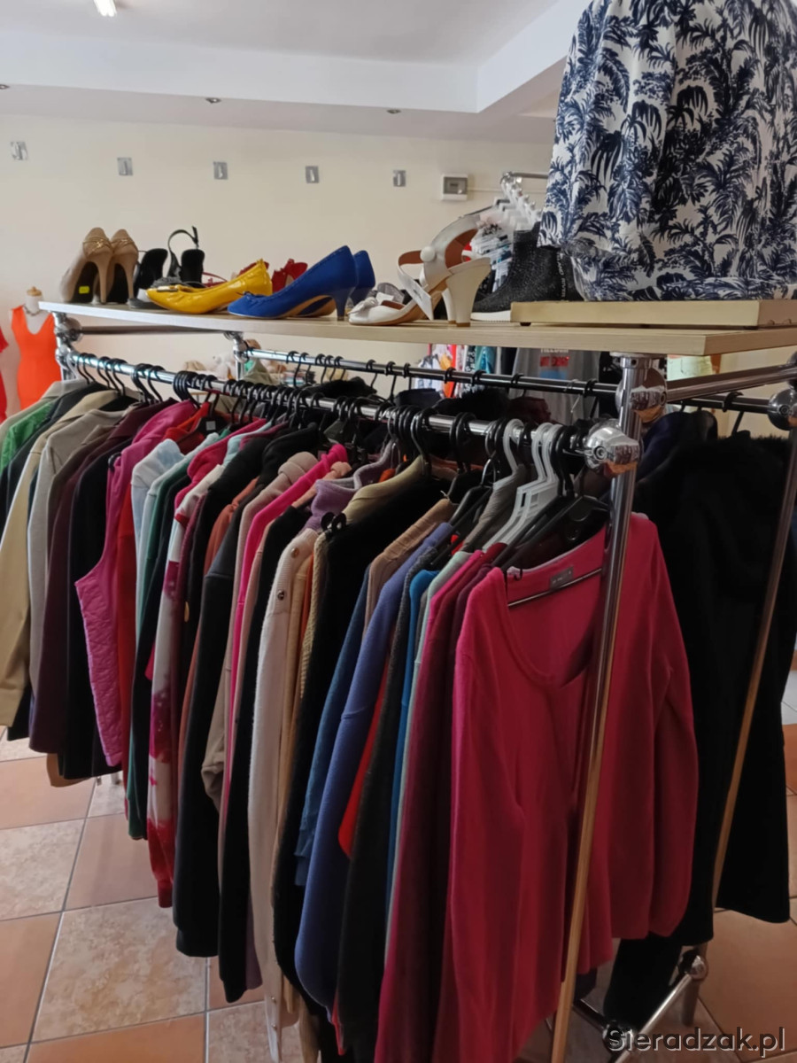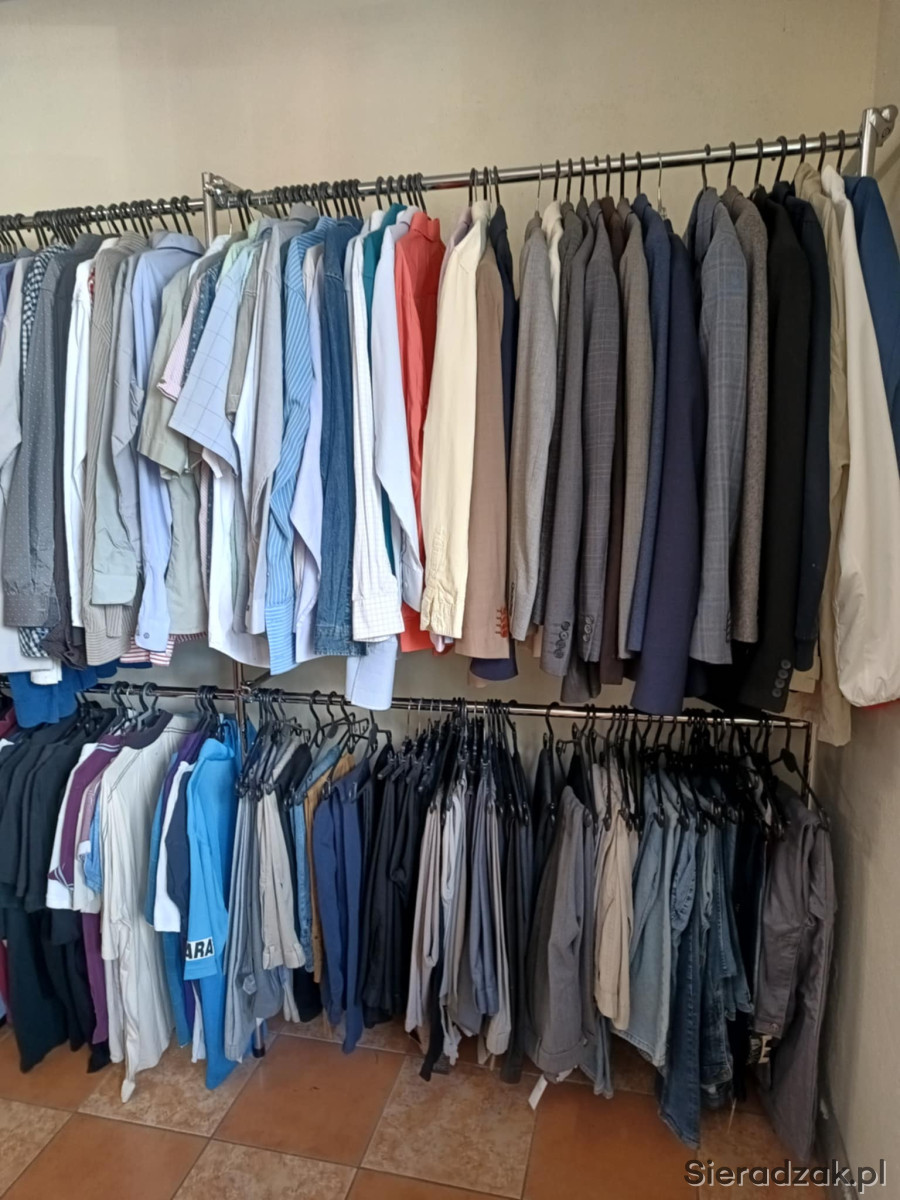 Dwa dwustronne stojące wieszaki z deską u góry, wieszak mocowany do ściany długość 5m+ 1,5m przymierzalnia, wieszak obrotowy wolnostojący, dorzucam metalową kasę i kilka rzeczy pozostałych po sklepie przydatnych na start. posiada też spor ilości wieszaków plastikowych obrotowych. Istnieje możliwość wystawienia rachunku