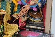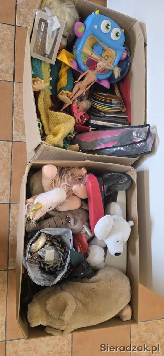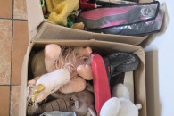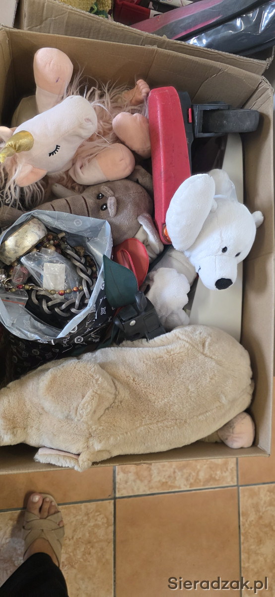 Bibeloty około 10kg w paczce znajduje się wszystko od zabawek po talerze, kubki, sztućce, kosmetyki. do dalszej odsprzedaży.