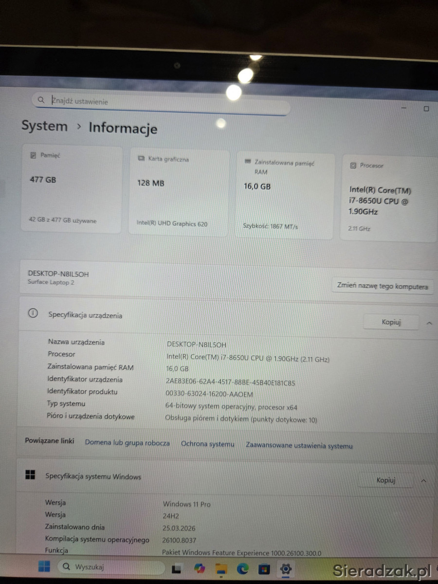 Na sprzedaż posiadam notebooka dotykowego Microsoft Surface Laptop 2, na procesorze i7-8gen, 8