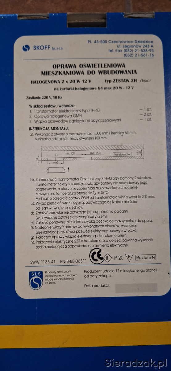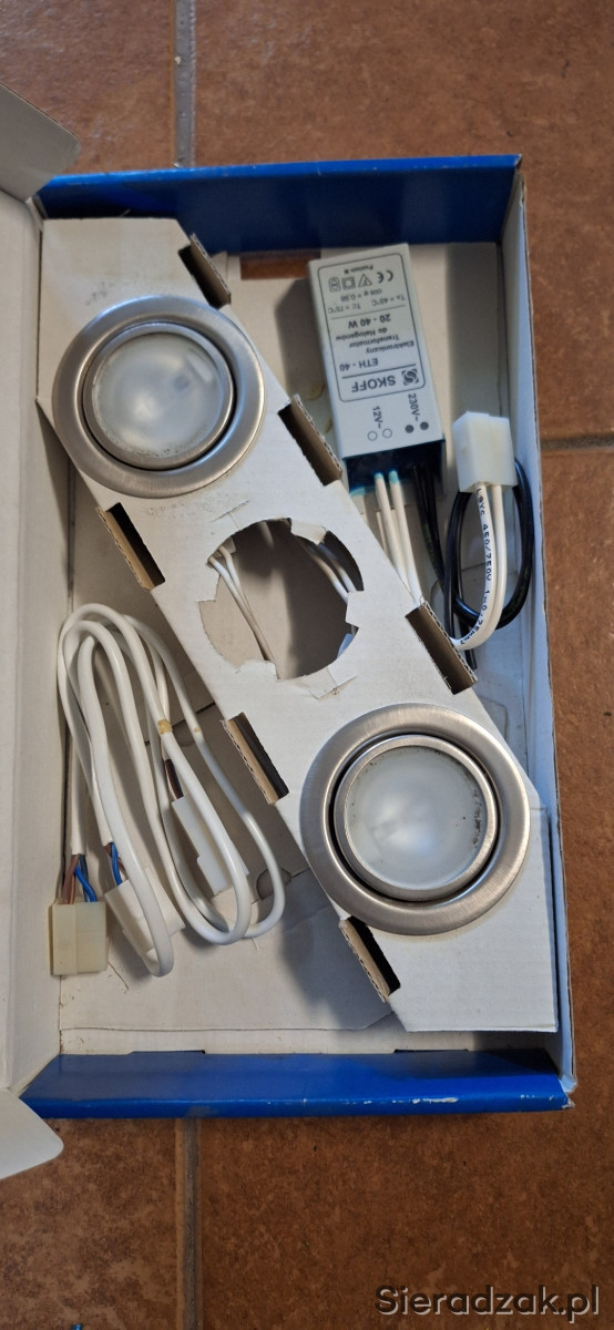 Nowy, fabrycznie zapakowany oprawka oświetleniowa halogenowa 2 x 20W. Urządzenie przeznaczone do montażu na ścianie lub suficie, z możliwością regulacji kąta świecenia.
