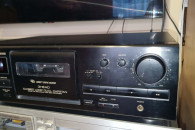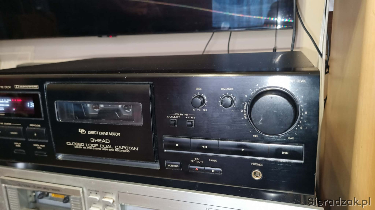 Otrzymujesz trzygłowicowy odtwarzacz z monitoringiem w czasie rzeczywistym z taśmy, ręcznie regulowanym biasem, systemem Dolby HX Pro, redukcją szumów typu B i C oraz licznikiem taśmy z trybami przewijania i czasu. System jest wyposażony w zdalne sterowanie i można podłączyć słuchawki, jednak nie ma regulacji głośności.