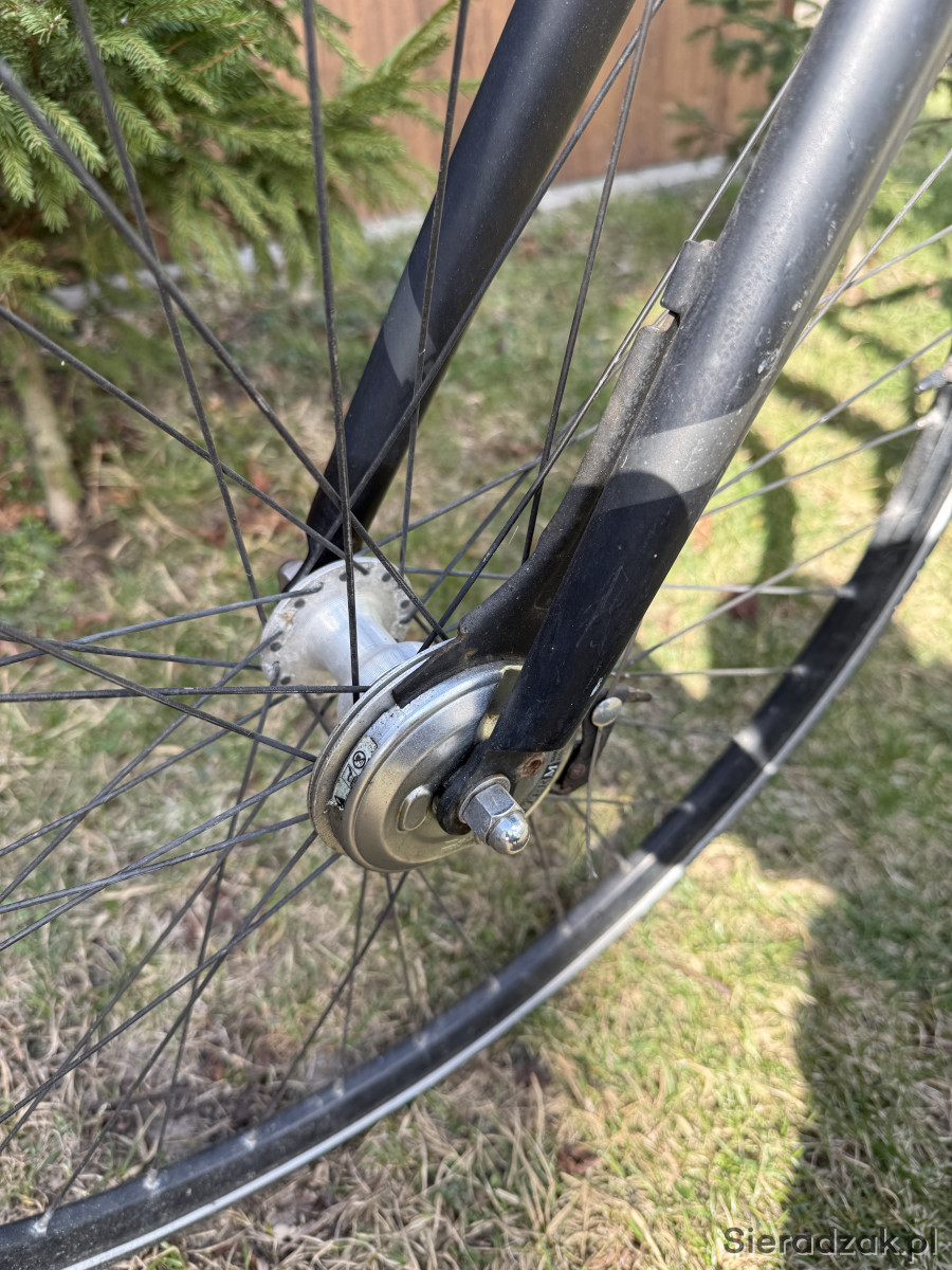 hamulce szczękowe, przerzutki w piaście (7 przerzutek) felgi wzmocnione-proste