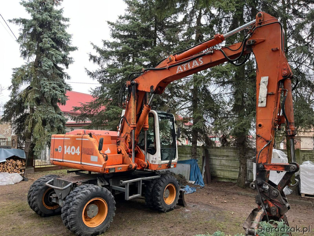 Sprzedam koparkę kołową ATLAS 1404 M w dobrym stanie technicznym i wizualnym. Rok produkcji 1998, maszyna przepracowała około 18.000 godzin. W naszym posiadaniu od 11.02.2010, została przez nas sprowadzona z Niemiec. 3 razy łamane ramię, oryginalny lakier, koparka jest w pełni sprawna i gotowa do pracy. Wszelkie prace eksploatacyjne wykonywane na bieżąco. Maszyna sprzedawana jest z szybkozłączem SMP T620 (Atlas) i jedną łyżką do kopania (do wyboru z widocznych na zdjęciu) w cenie. Cena 65,000 zł brutto na export, w kraju + 23% VAT. Wiecej informacji udzielę telefonicznie pod numerem: