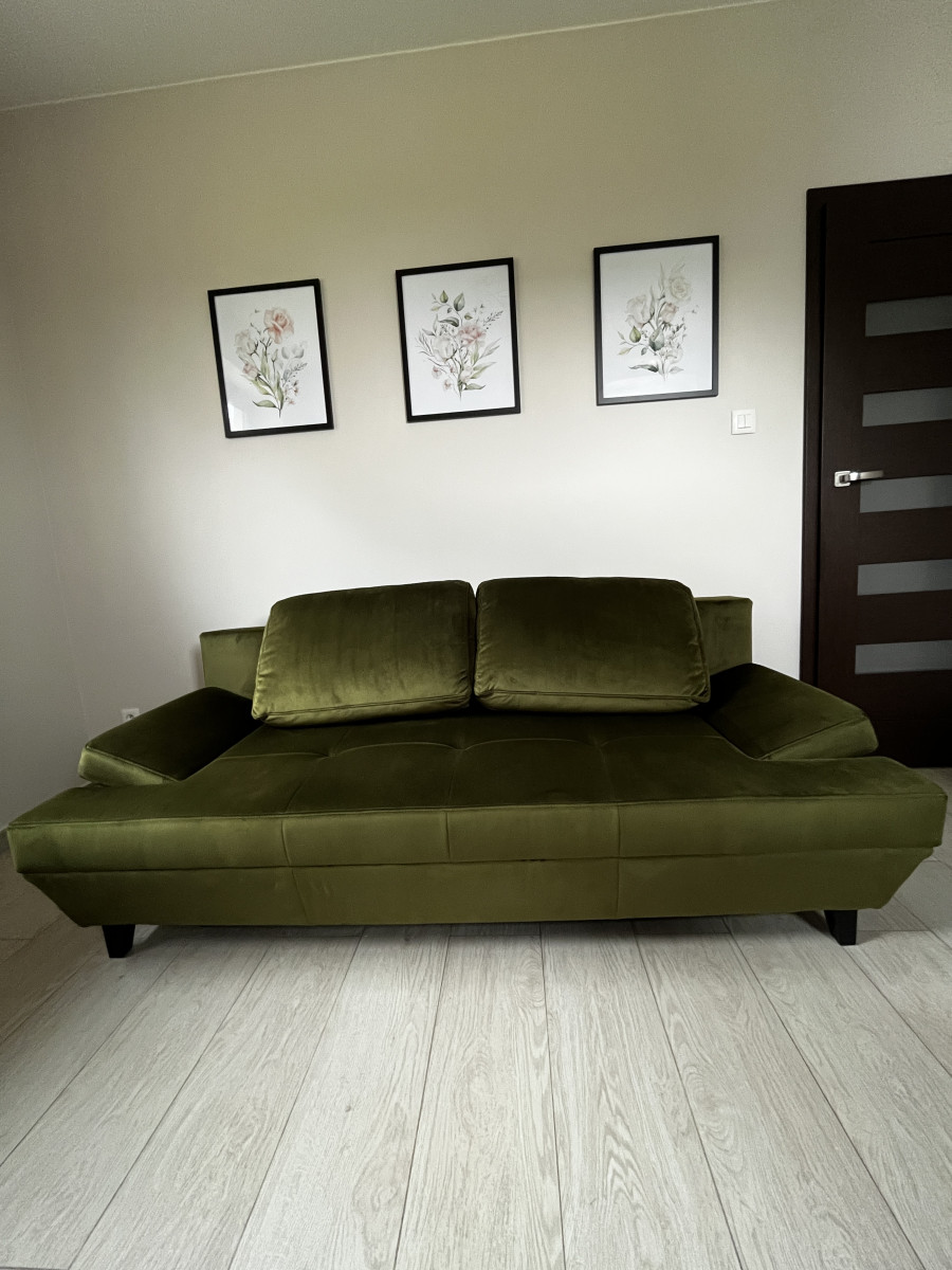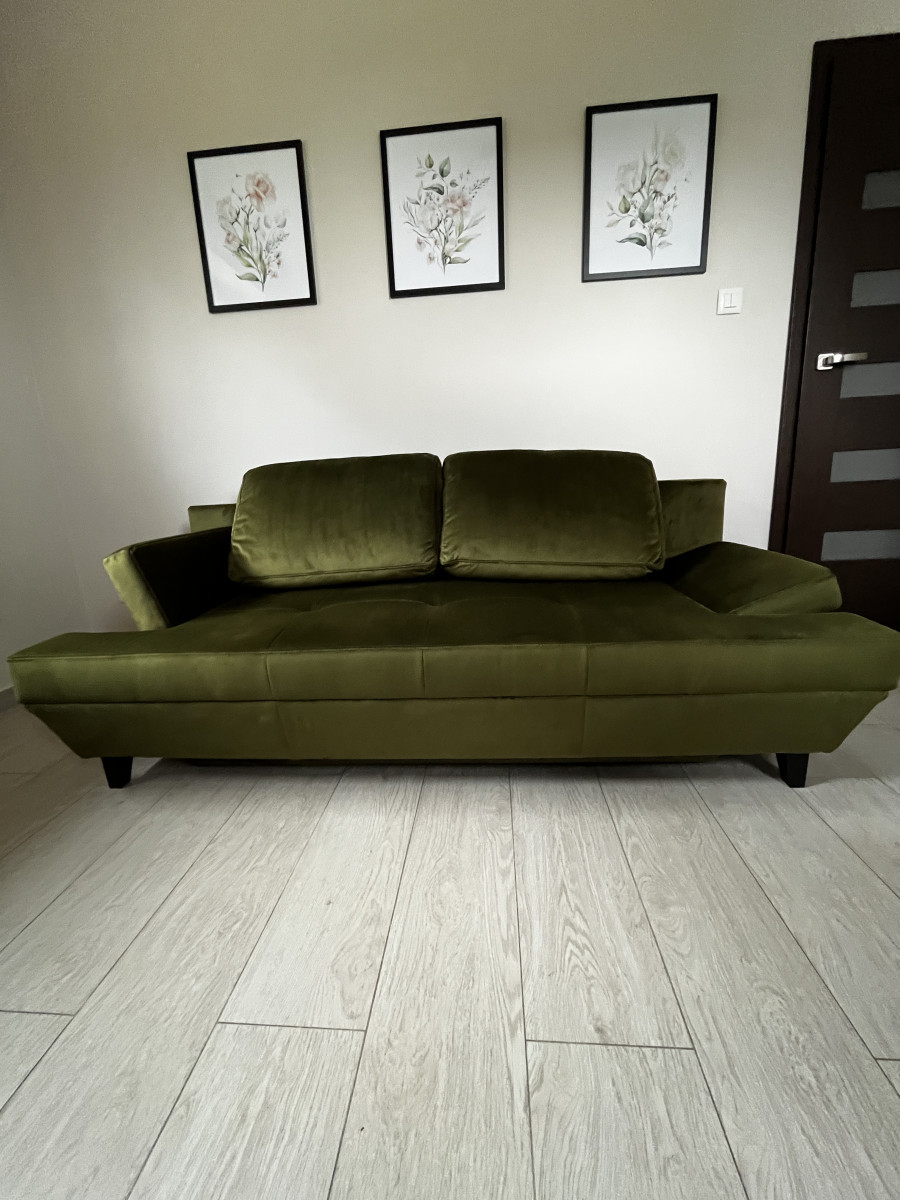Posiada ona dużą powierzchnię do leżenia oraz spory pojemnik na pościel. Dodatkowo wyposażona została w regulowany wielopoziomowo mechanizm rozkładanego podłokietnika, który pozwala na jego wykorzystanie jako podłokietnik lub podgłówek.