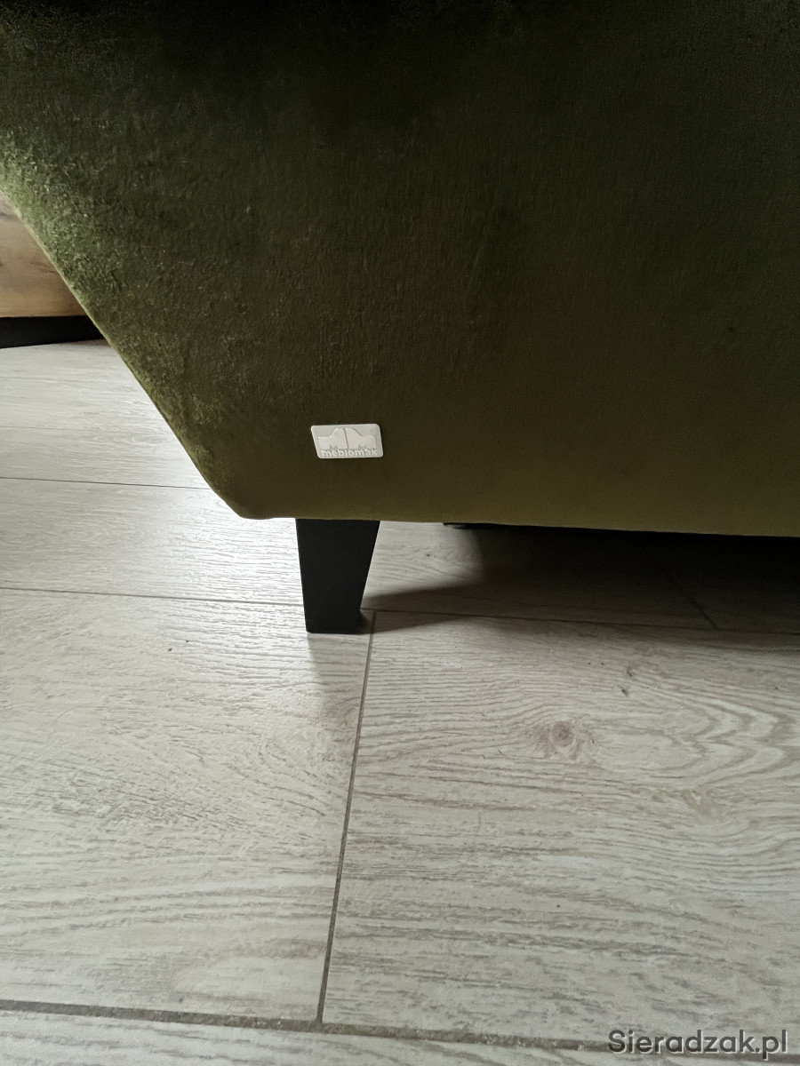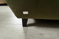 Posiada drewniane nóżki w kolorze czarnym. Natomiast poduchy są z tyłu zapinane na zamek błyskawiczny.