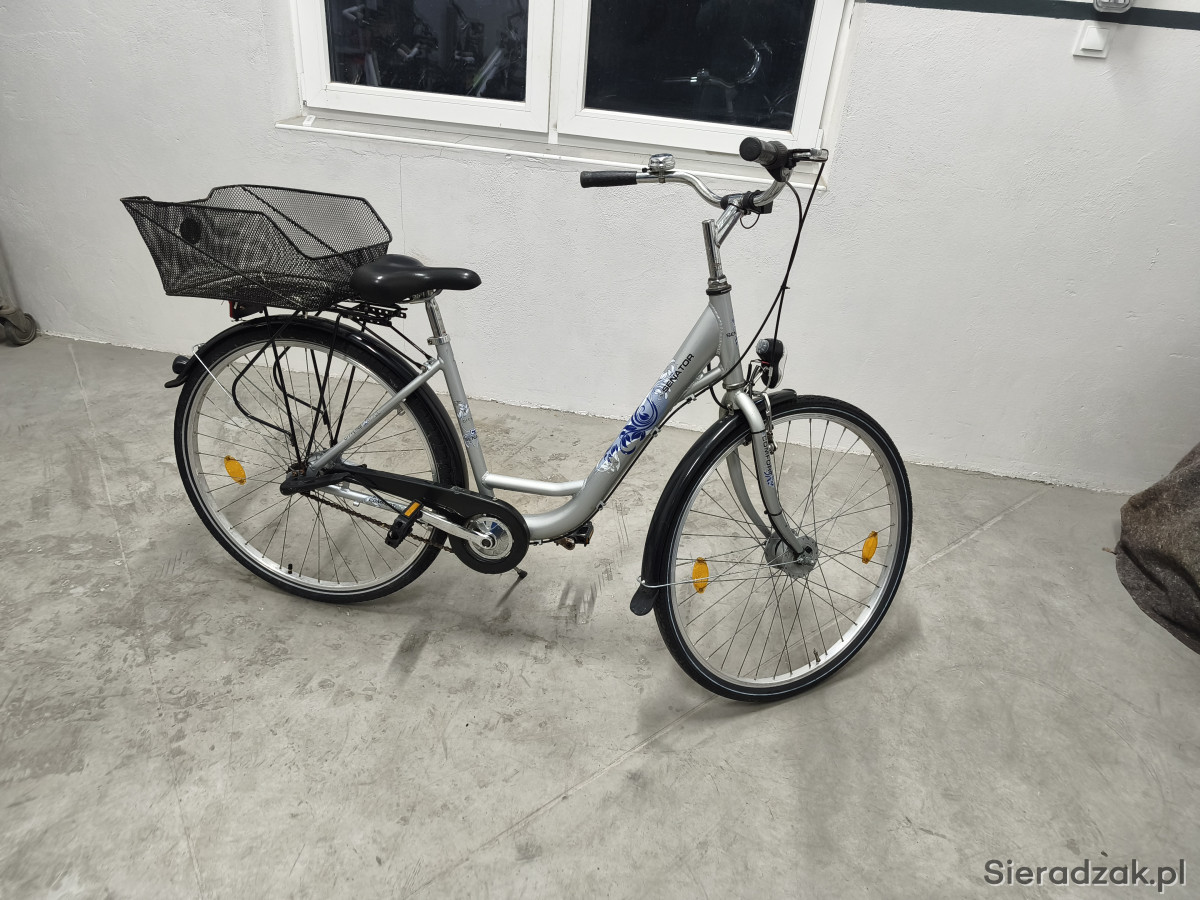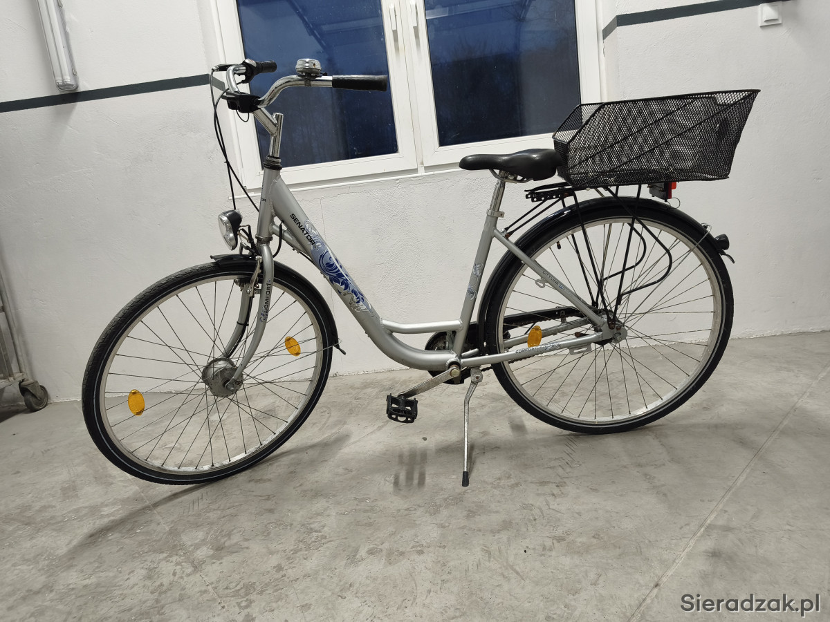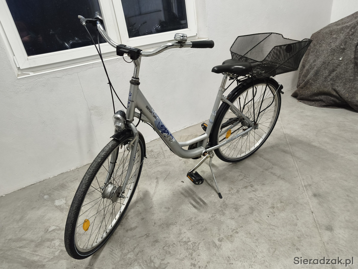 3 biegi, rama aluminiowa, dynamo (prądnica) w przedniej piaście. Działające oświetlenie.