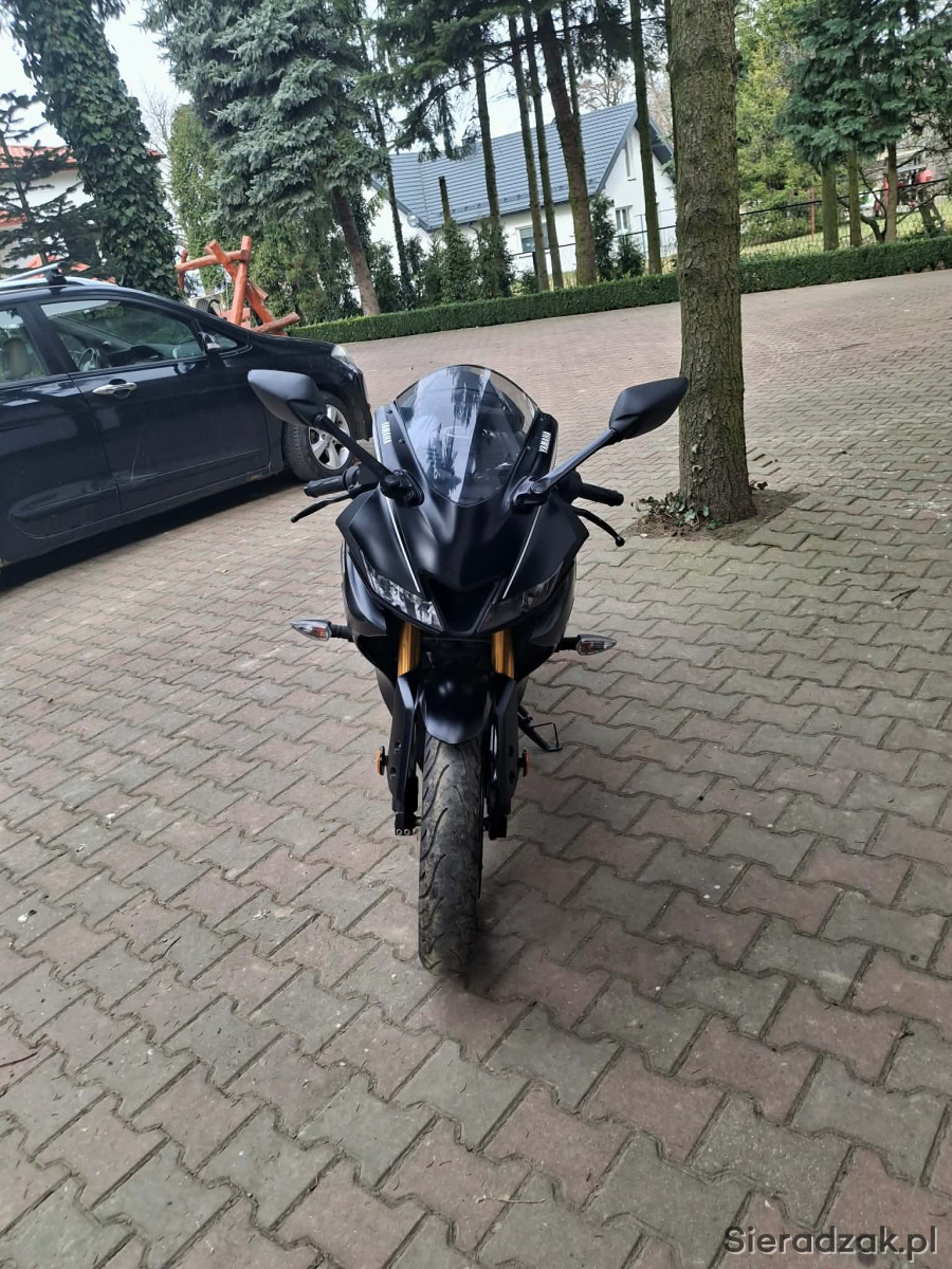 Na sprzedaż oferuje bardzo zadbany motocykl Yamaha YZF-R125 z 2021 roku. Jestem pierwszą właścicielką - motocykl został kupiony w salonie i od poczatku był garażowany oraz regularnie serwisowany. Motocykl jest bezwypadkowy, w bardzo dobrym stanie wizualnym i technicznym. Wszystkie części są oryginalne, w kolorystyce Tech Black w wersji ze złotymi lagami. Najważniejsze informacje: