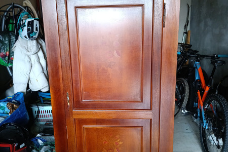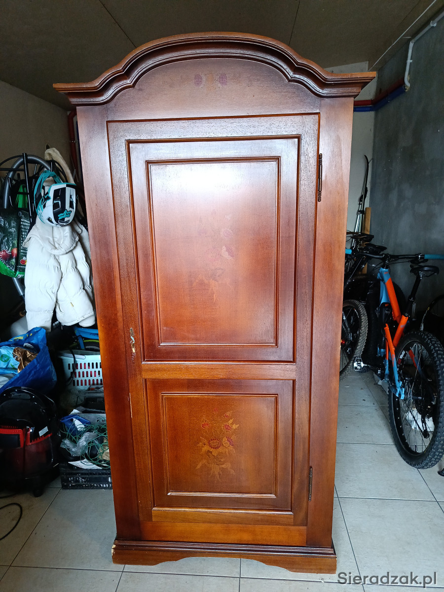 Drewnianą zabytkowa szafa i intarsjami kwiatowymi. Uszkodzona w okolicach zamka. Brak kluczyka, zamek sprawny. Odbiór osobisty