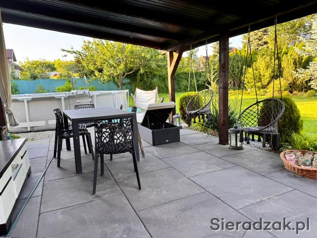 Na działce murowany grill granitowy, teren obsługiwany przez robota koszącego plus system nawadniania.