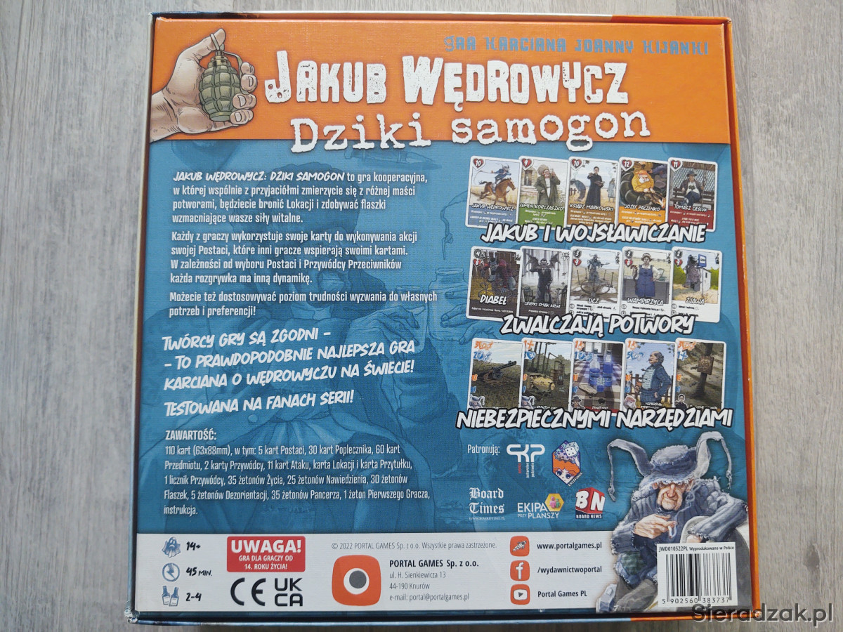 Witam, sprzedam używaną, kooperacyjną grę karcianą Jakub Wędrowycz: Dziki samogon. Gra jest w stanie bardzo dobrym (rozegrana trzy razy), wszystkie elementy są kompletne.