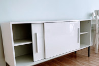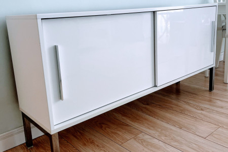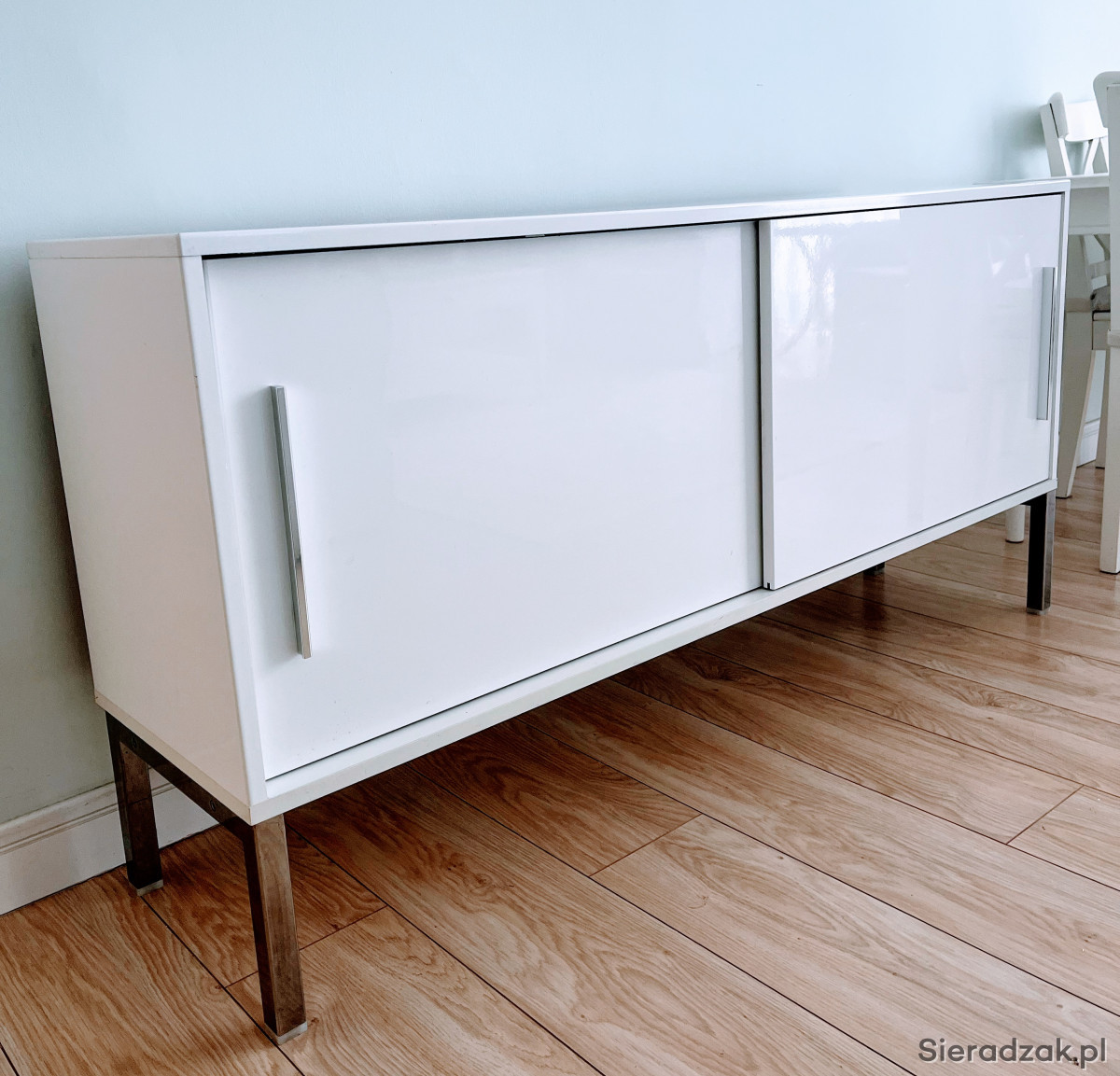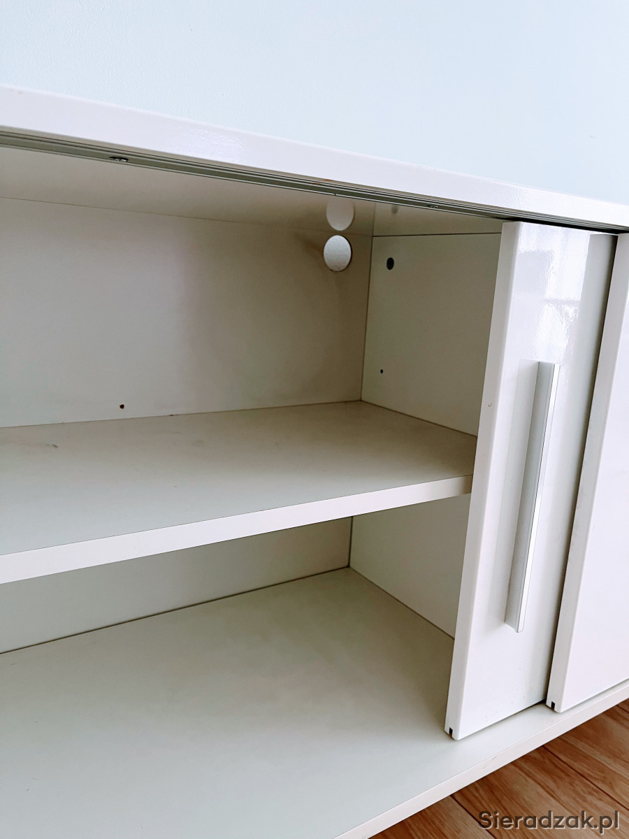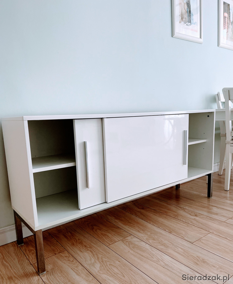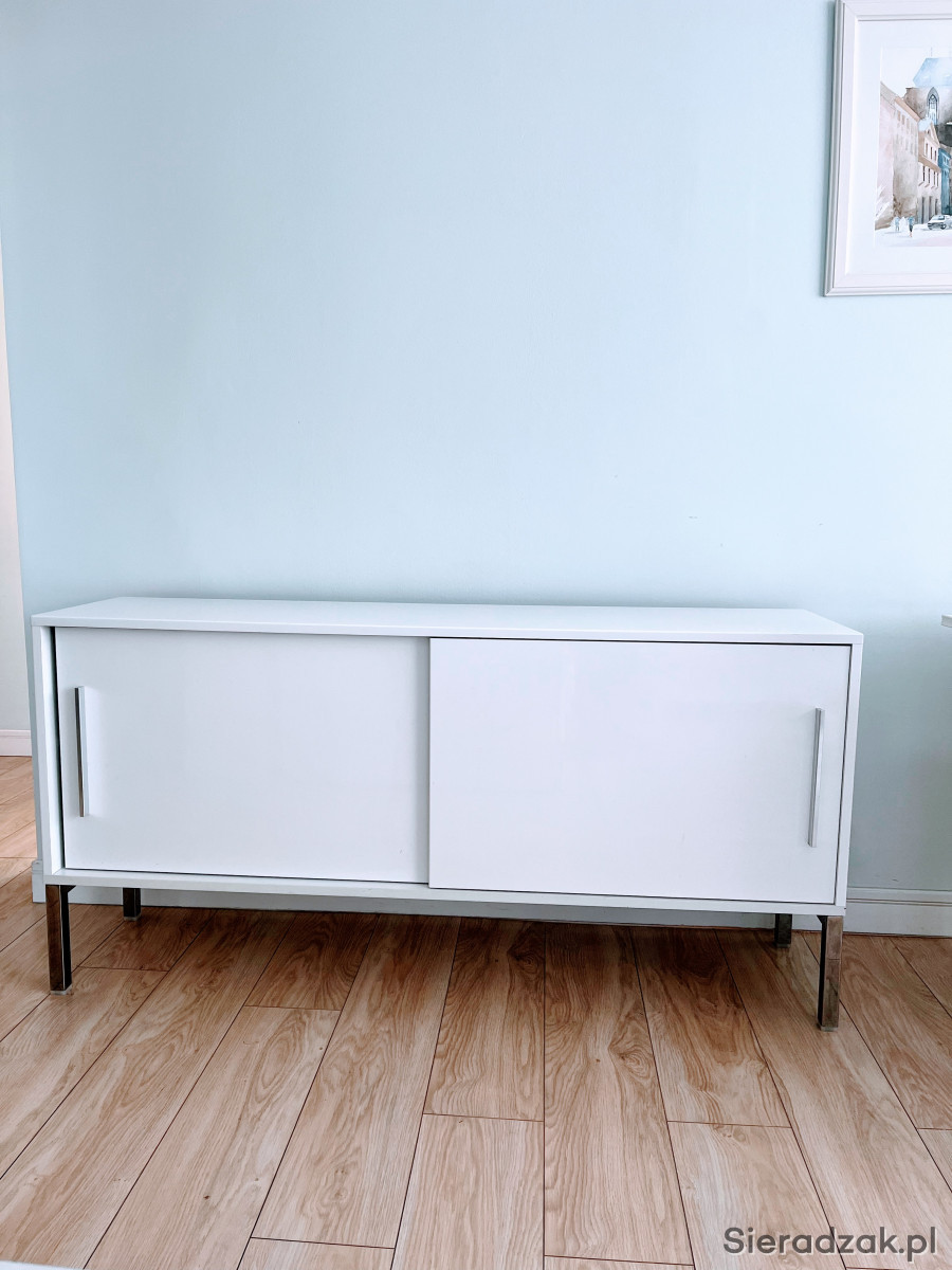 Komoda IKEA Galant, biały połysk, z drzwiami przesuwnymi, szerokość 150, głębokość 38,5 cm, wysokość 74 cm. Nóżki i uchwyty chromowane. Odbiór własny. Stan bardzo dobry. Szczegółowe informacje - telefonicznie.
