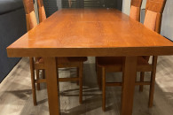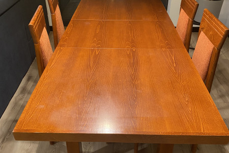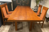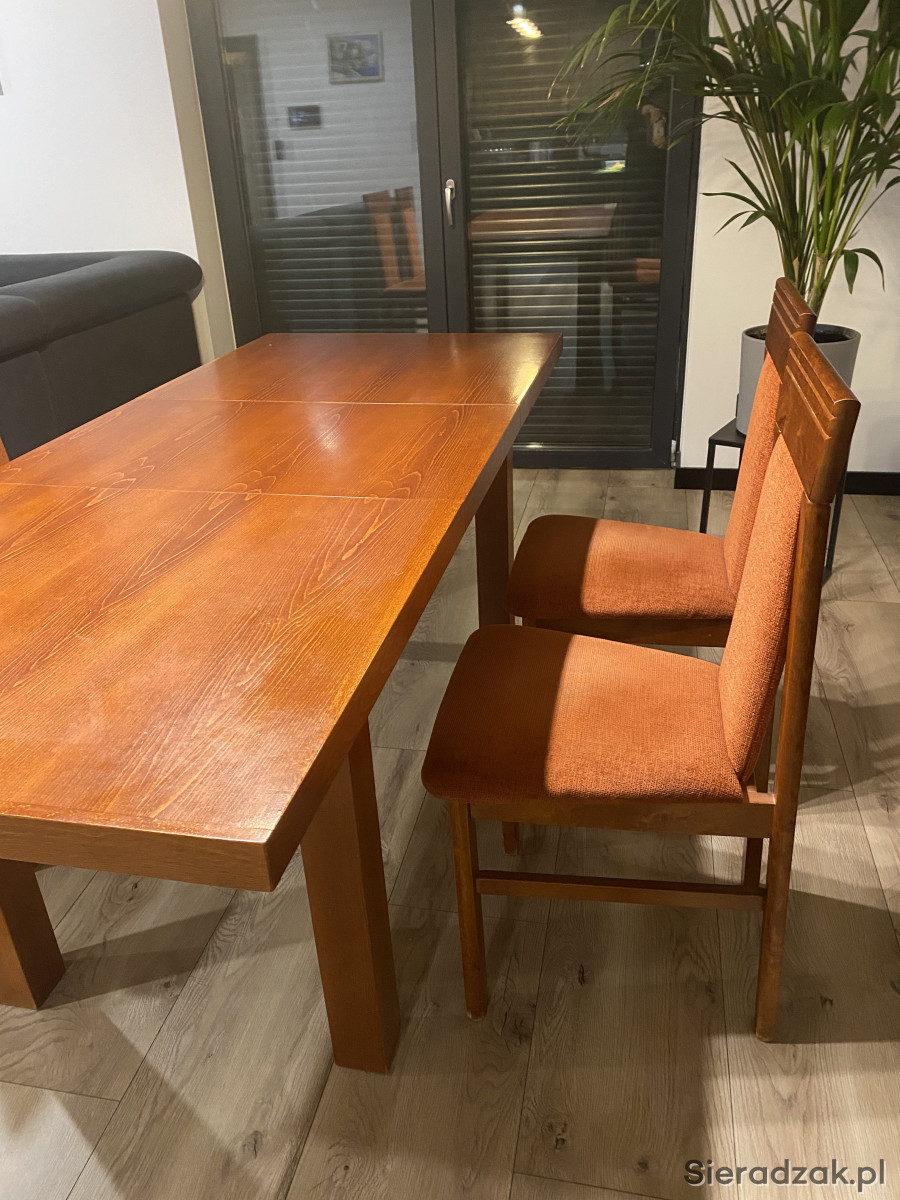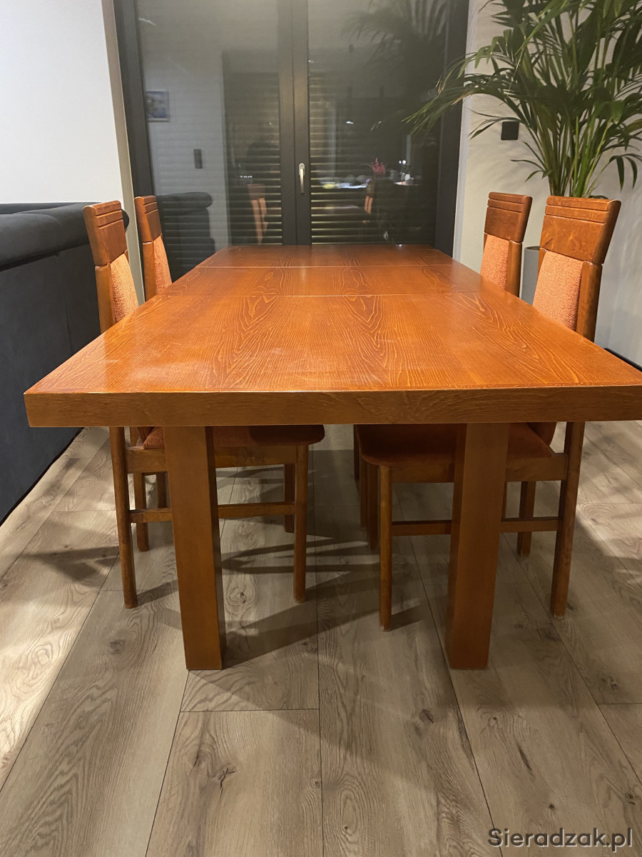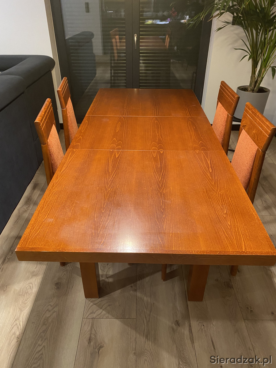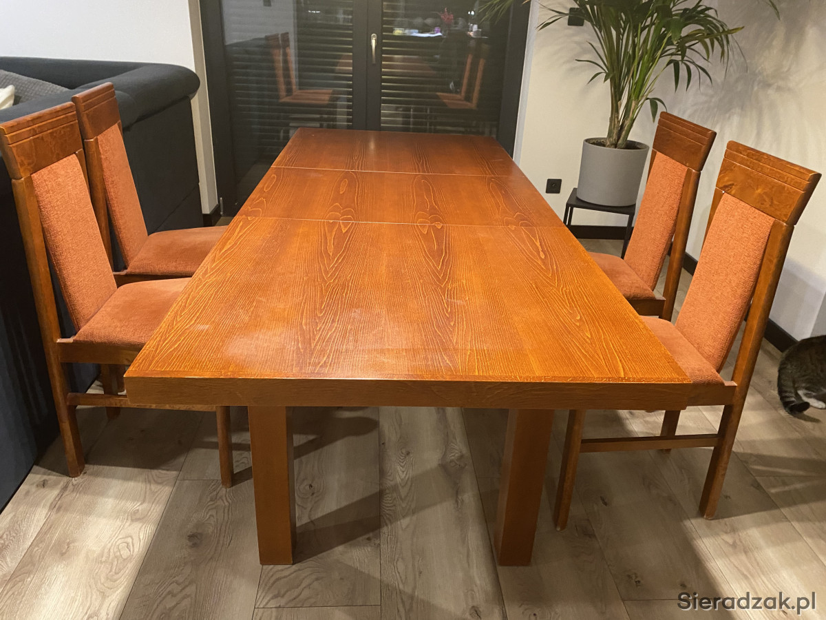 Stół i 4 krzesła, Ok. 140 cm x 80 cm, rozkładany jeszcze dłuższy, jest dość ciężki, stabilny, stan bardzo dobry. Odbiór w Dzierlinie.