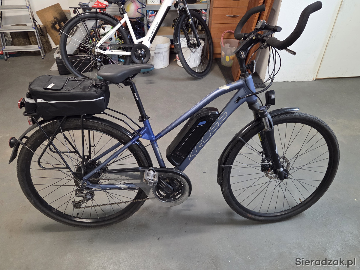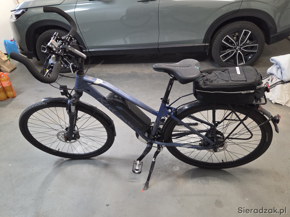Sprzedam rower elektryczny Kross Trans Hybrid. Damka. Rama 17", koła 28". Bateria ładnie trzyma.