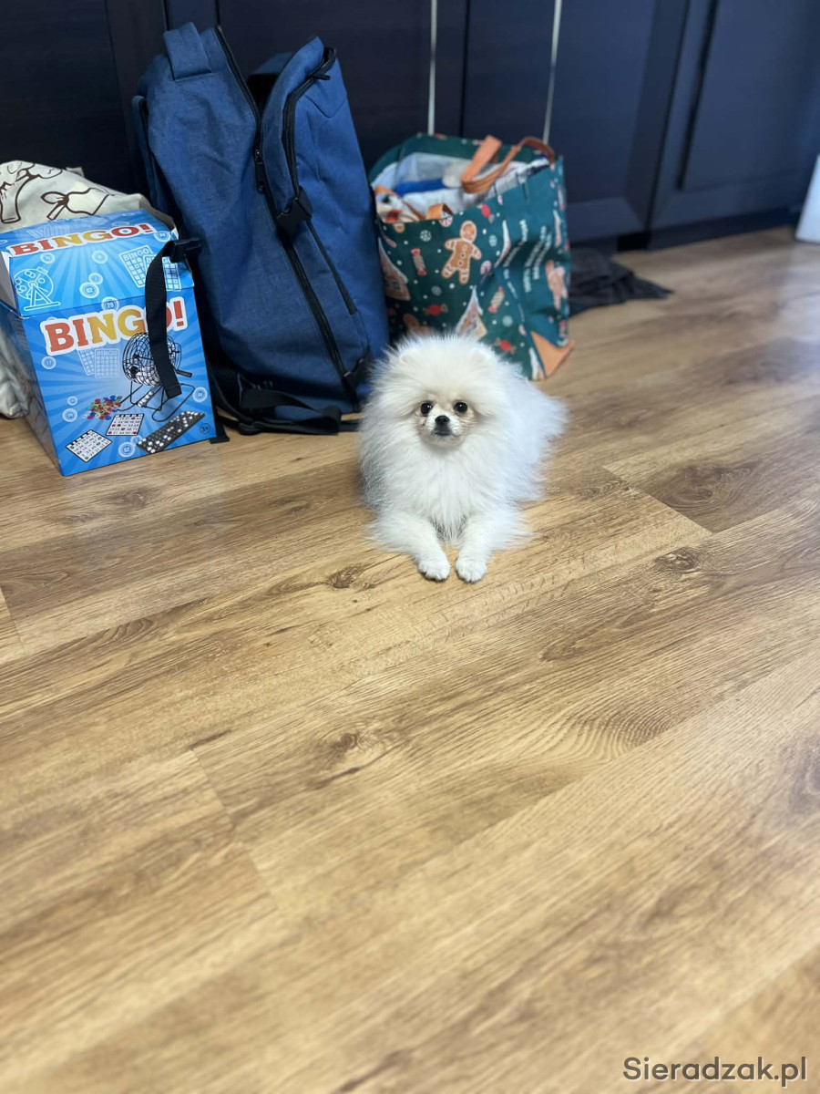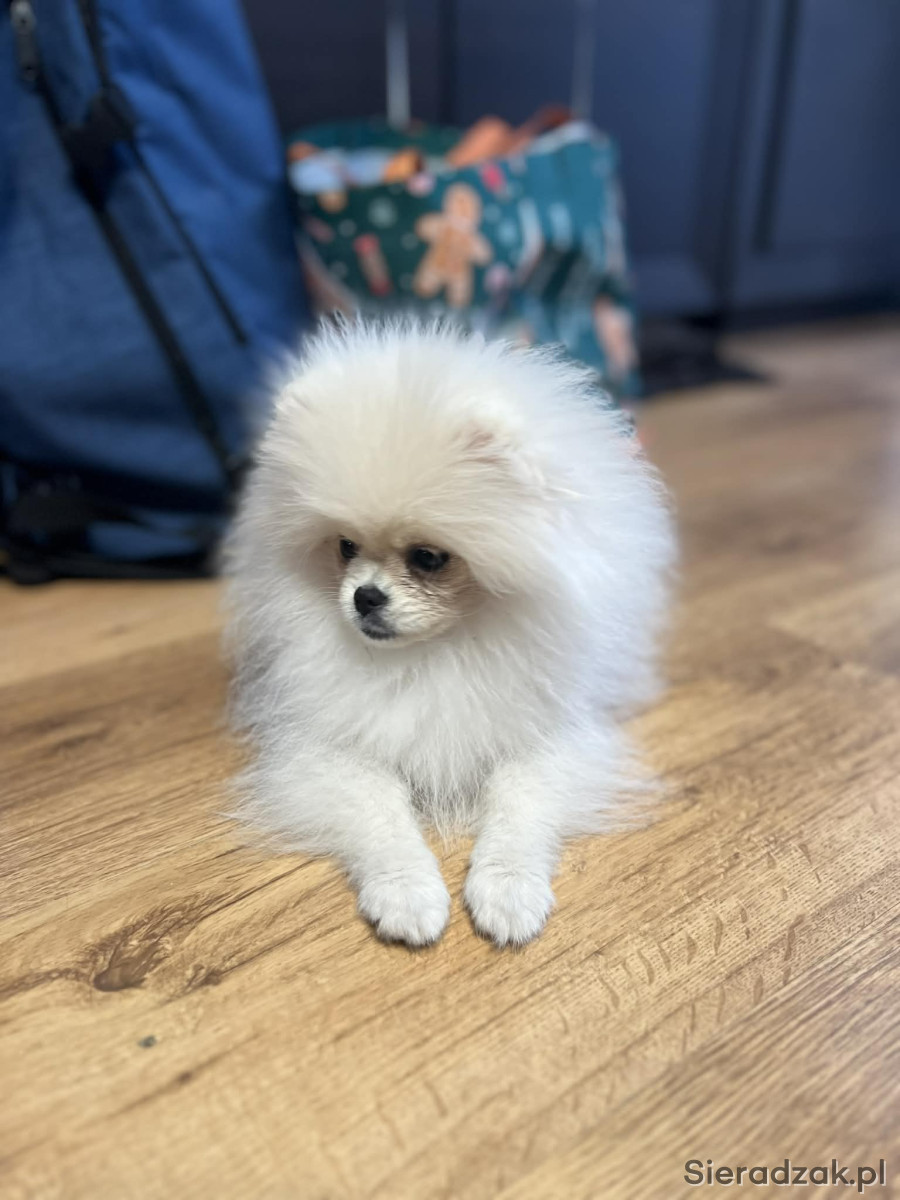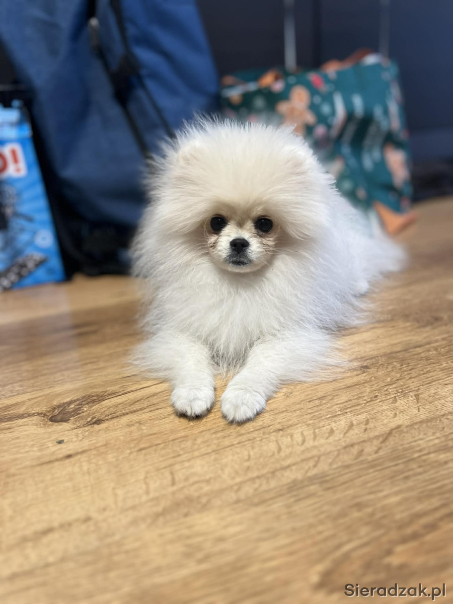 Oferuję przepiękną suczkę rasy Pomeranian o śnieżnobiałym, gęstym futerku i idealnej, kompaktowej budowie.