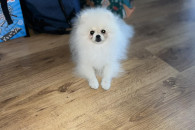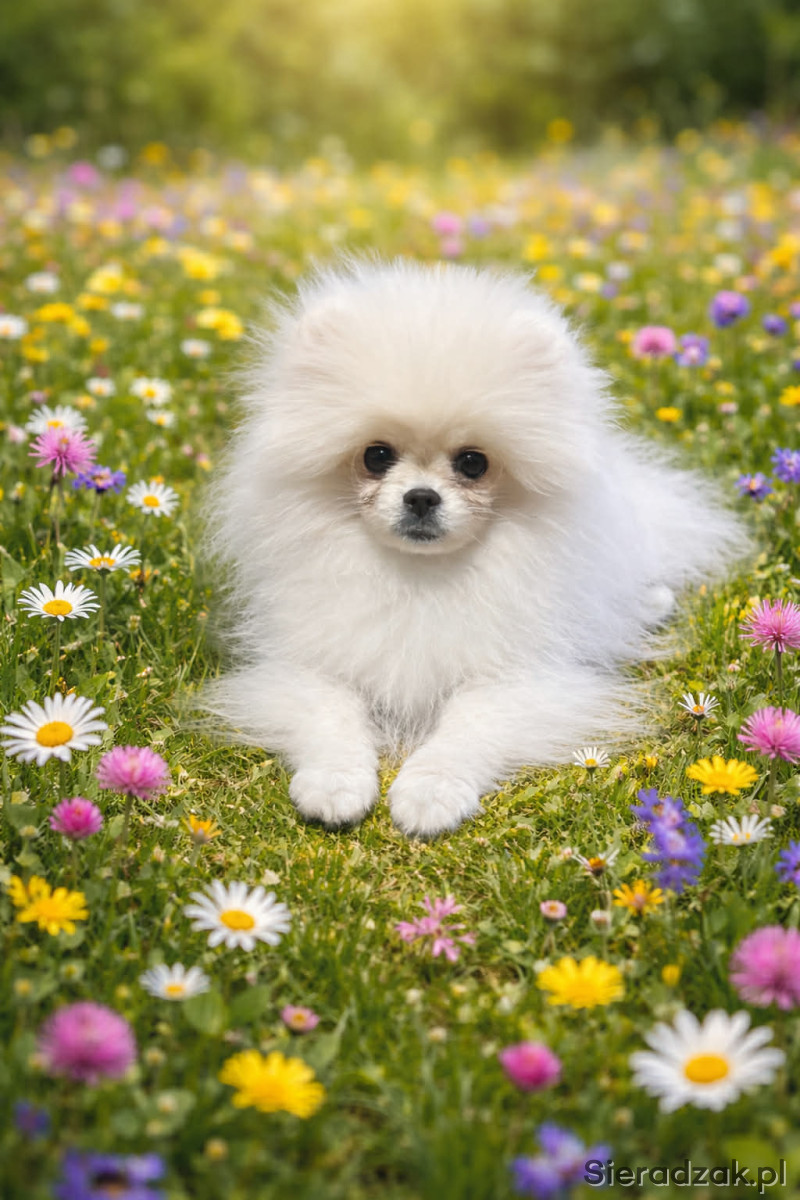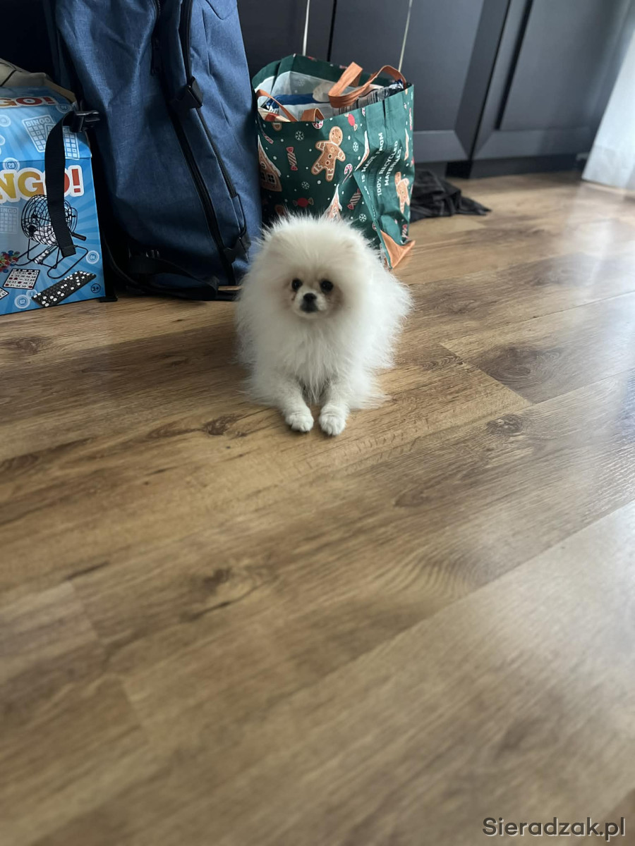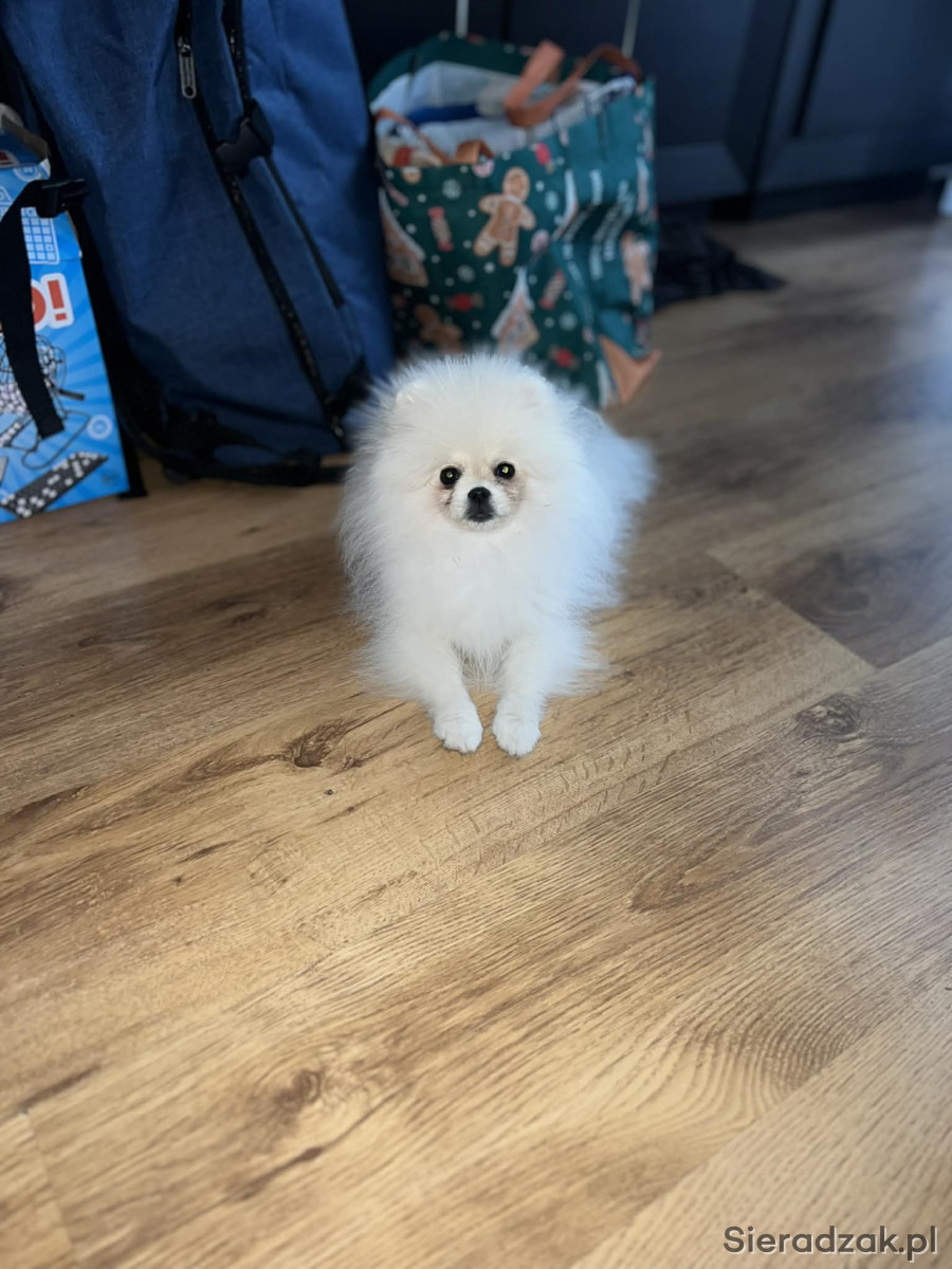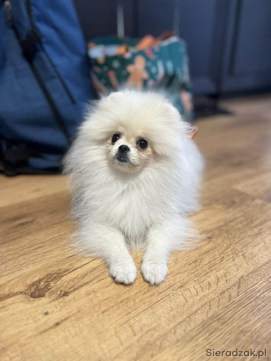 Oferuję przepiękną suczkę rasy Pomeranian o śnieżnobiałym, gęstym futerku i idealnej, kompaktowej budowie.