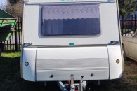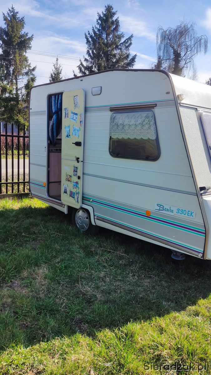 Sprzedam przyczepkę kempingową Caravelair Bamba 330EK z 1993 r. Stan bardzo dobry, wnętrze czyste, zadbane, ma jedno duże składane łóżko, pomieściło 2+2.