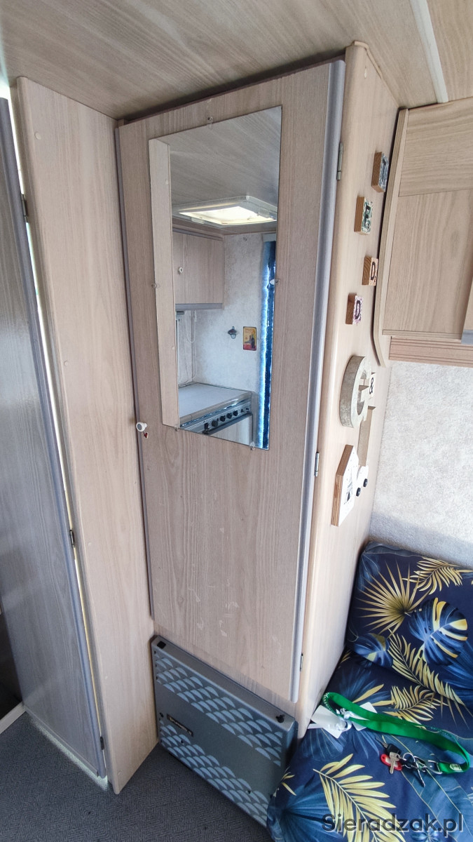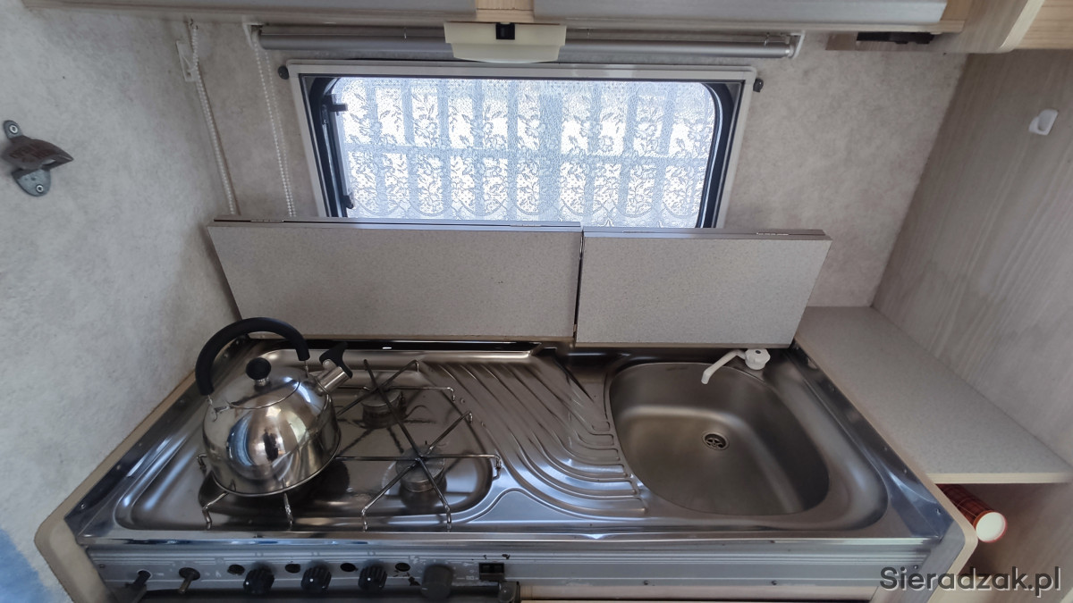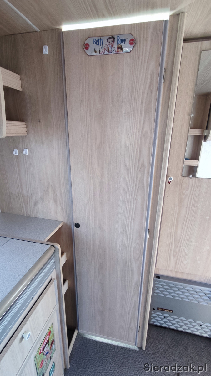 Sprawne oświetlenie, lodówka z zamrażarką, kuchenka gazowa 3 palnikowa, ogrzewanie, wiele schowków i szafek, moskitiery do okien, zarejestrowana.