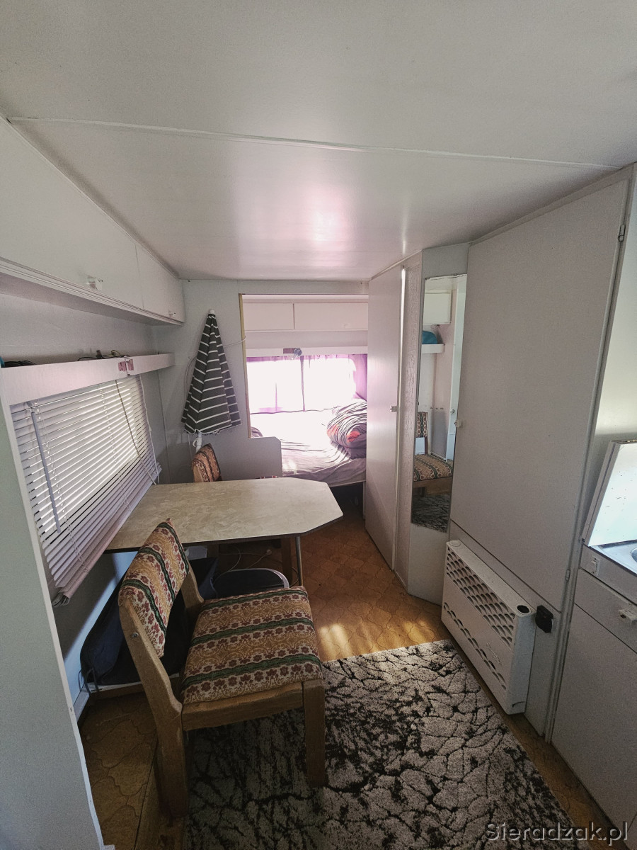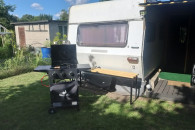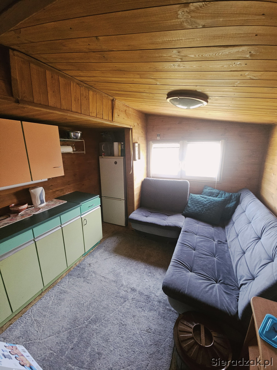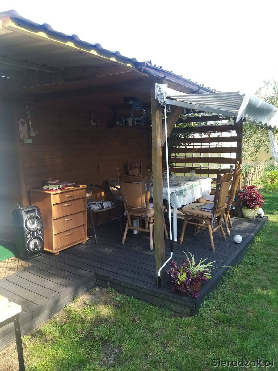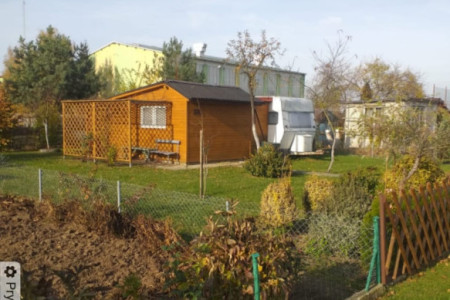 Na dziłce znajduje się domek z komórką połaczony z przyczepą kempingową. Na działce spokojnie wyśpi się kilka osob.