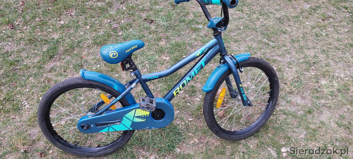Sprzedam rower Romet Tom rozmiar kół 20 cali niebieski kolor z naklejkami w dinozaury. Więcej informacji pod numerem telefonu 516192897