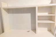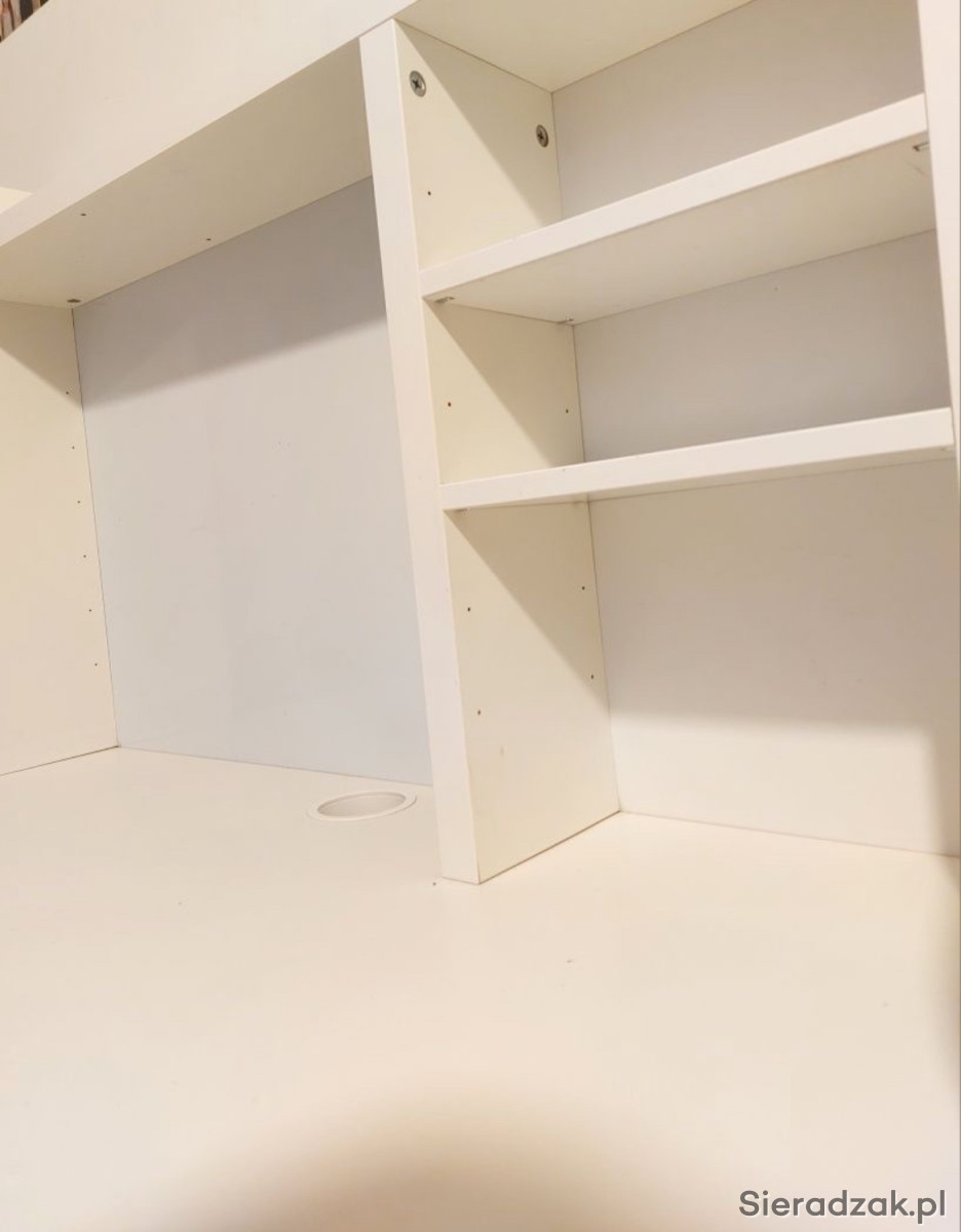 Biurko IKEA w kolorze białym z różowymi wstawkami. Posiada szuflady, szafki oraz tablicę magnetyczną. Na blacie jest kilka plam od kleju widocznych na zdjęciach. Więcej informacji priv