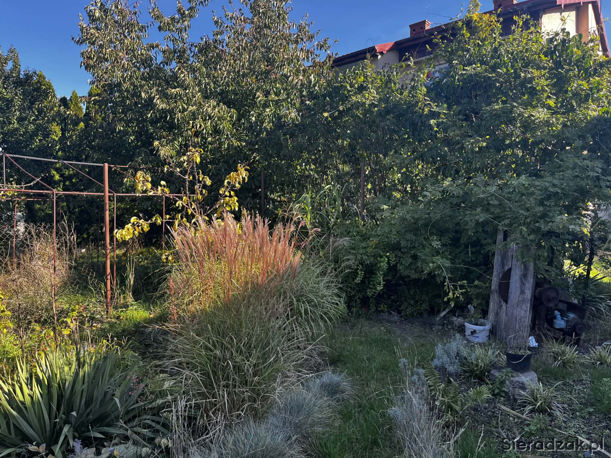 Na działce znajdują się liczne nasadzenia – drzewa oraz krzewy owocowe, co nadaje jej przyjemny, zielony charakter.