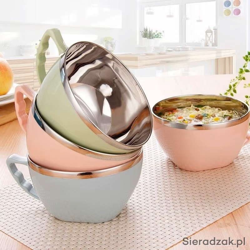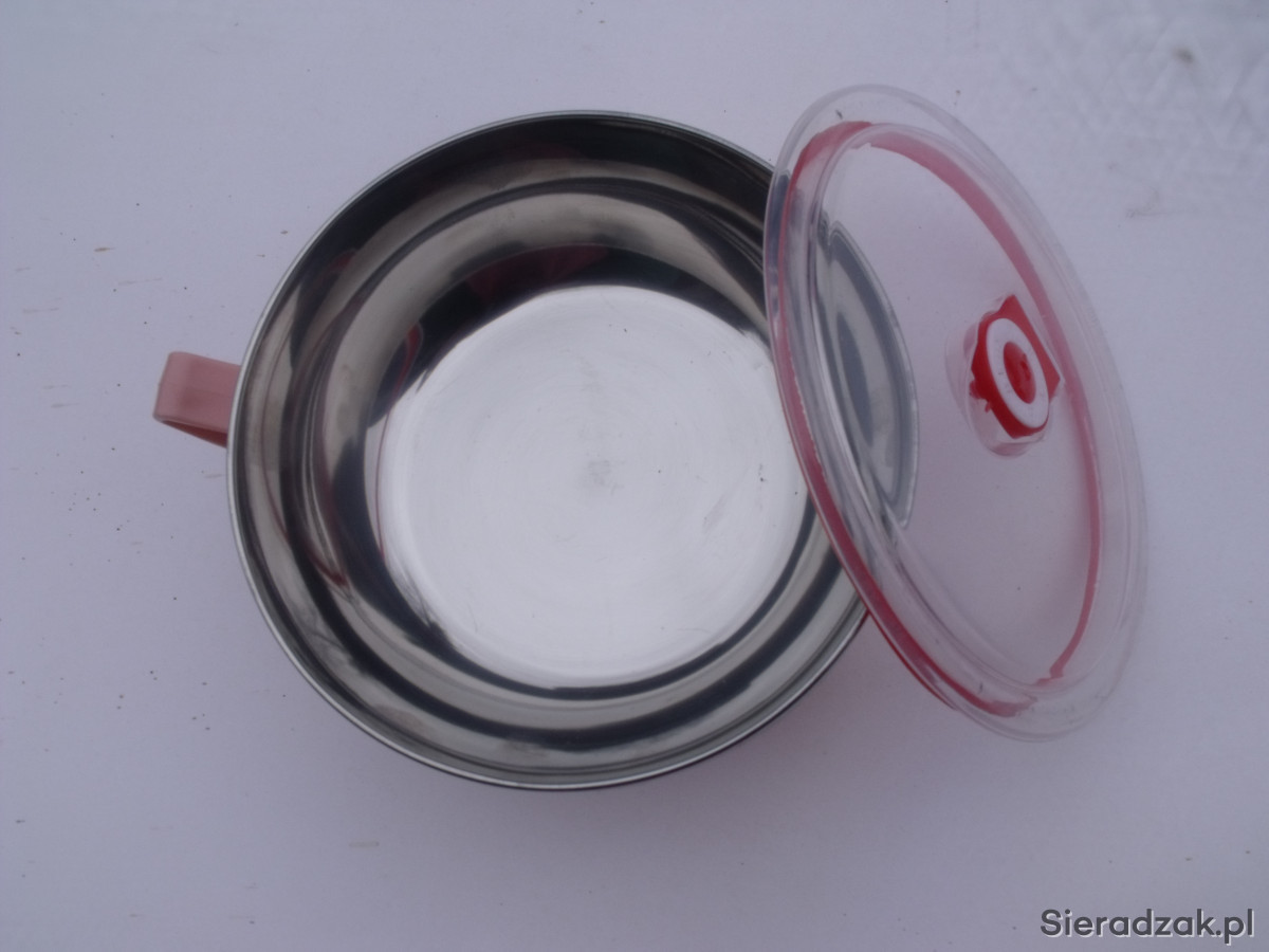Kubek/Miska wykonany jest z higienicznej i nierdzewnej stali, zewnętrzna część z tworzywa sztucznego nigdy się nie nagrzewa