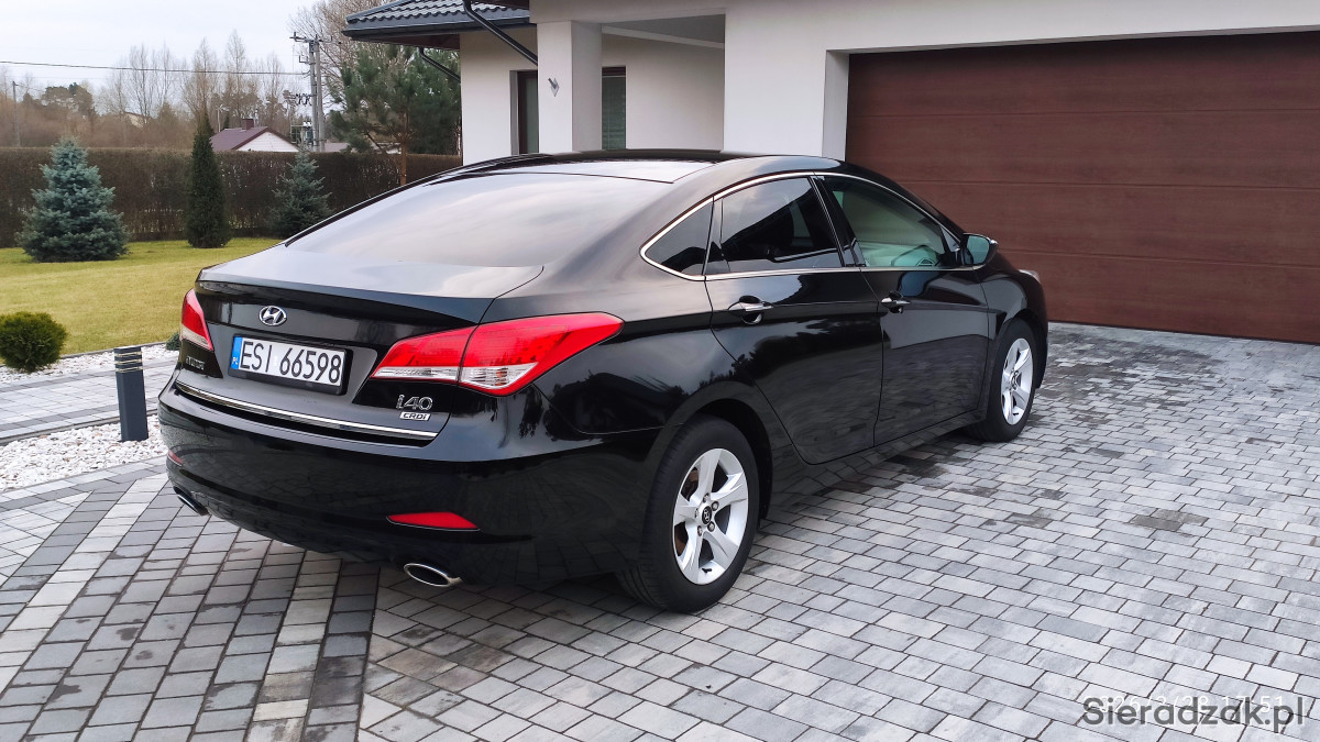 Prezentowany Hyundai i40 to elegancki sedan w kolorze czarnym. Wyposażony jest w klimatyzację automatyczną (klimatronic). Przebieg wynosi 164 500 km.