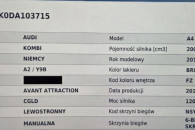 Sprzedam zadbane Audi A4 Avant (Kombi) 2.0 TDI 163 KM z końca 2012 roku (model 2013). Auto sprowadzone osobiście z Niemiec, od 10 lat jestem jego drugim właścicielem. Samochód jest bezwypadkowy, a co za tym idzie w orginalnym lakierze. Zawsze garażowane, regularnie serwisowane i utrzymane w dobrym stanie technicznym oraz wizualnym jak na wiek i przebieg.