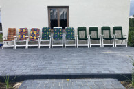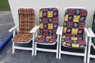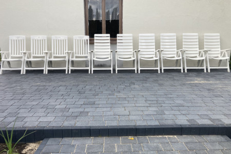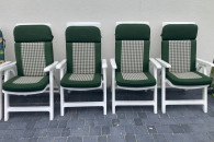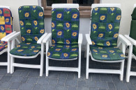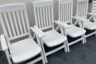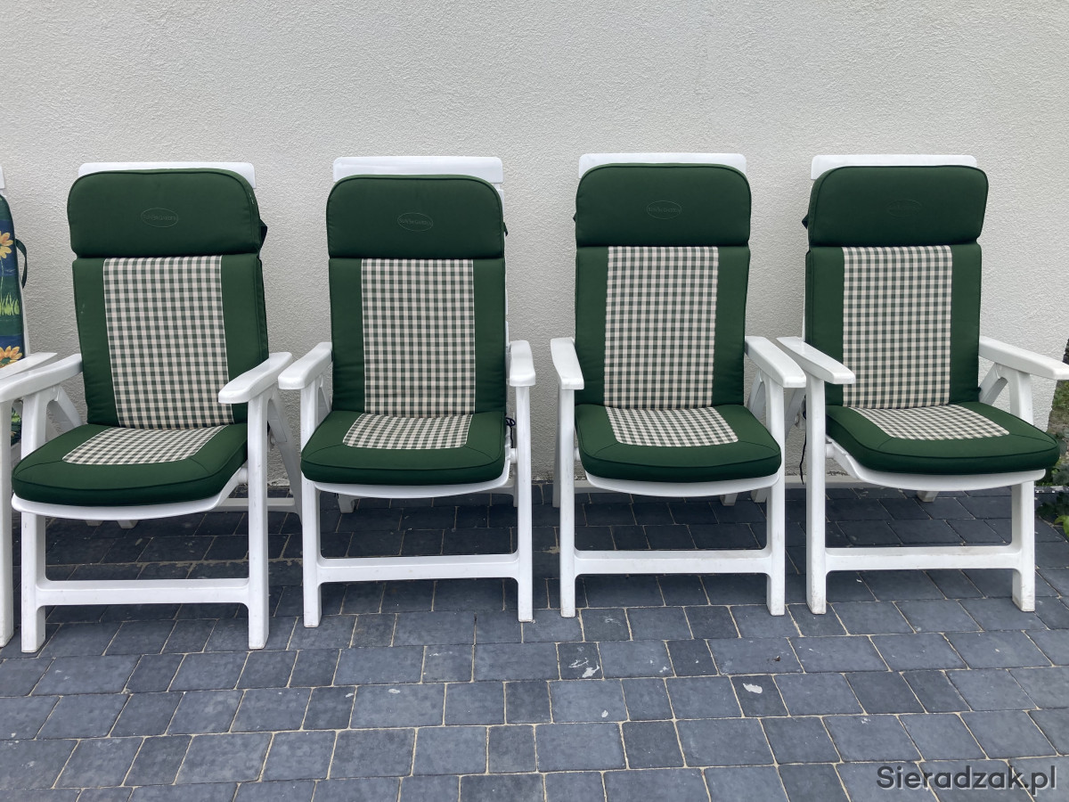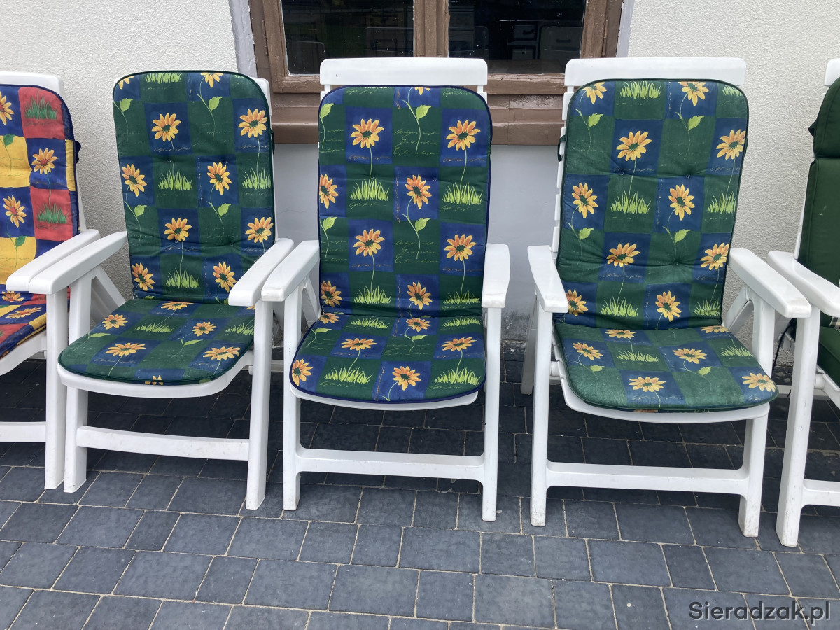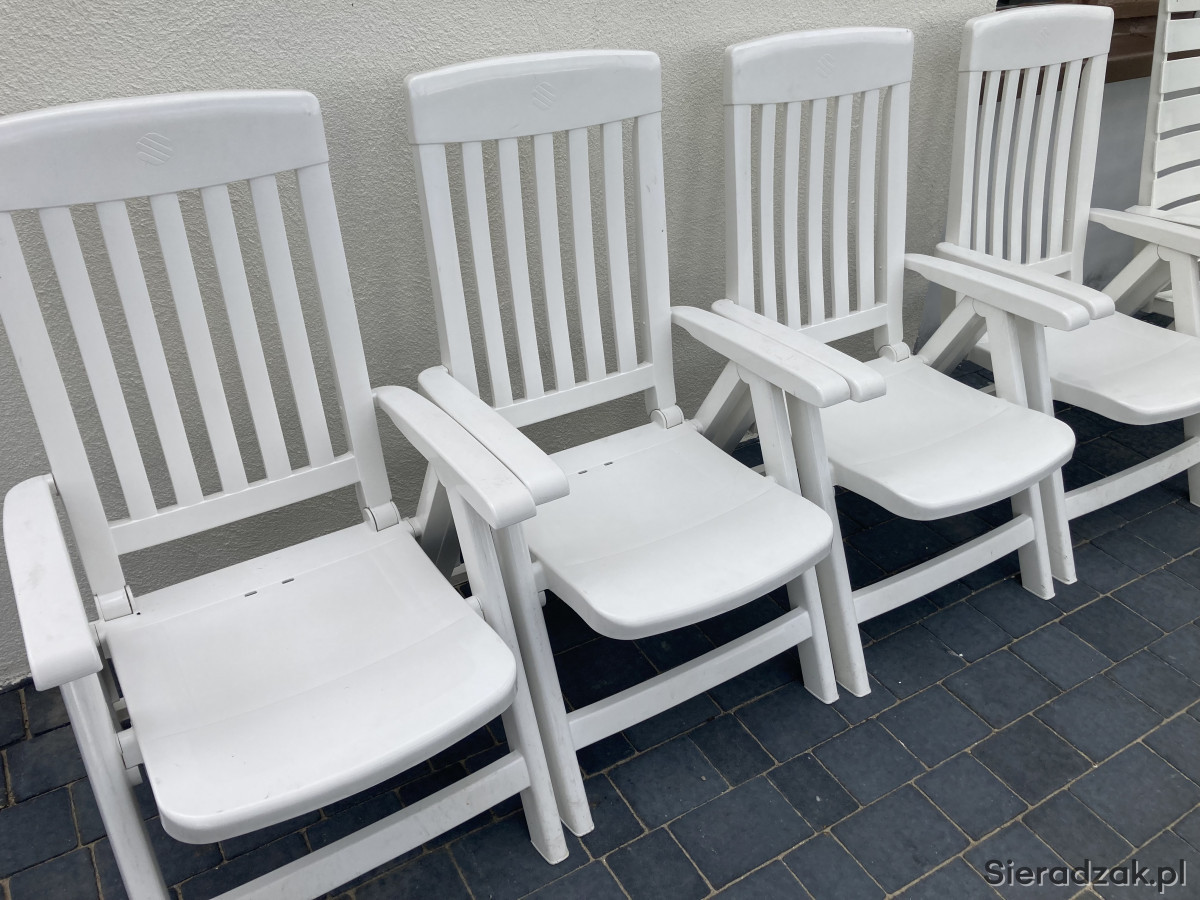 Wygodne, białe i rozkładane krzesła ogrodowe, idealne do wypoczynku na świeżym powietrzu. Wykonane z trwałych materiałów, zapewniają komfort i relaks w Twoim ogrodzie lub na tarasie. Zestaw składa się z 10 sztuk krzeseł (6 + 4 szt), w bardzo dobrym stanie technicznym, bez uszkodzeń, bez połamań.