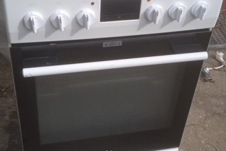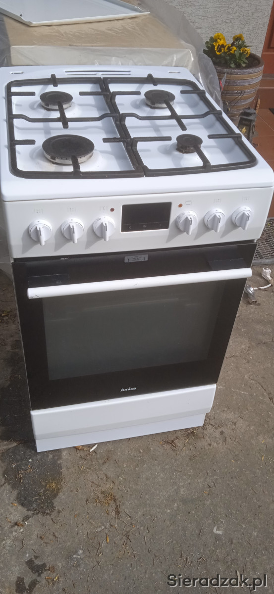 kuchenka gazowo-elktyczna 50 cm amica z pelnym mozliwym wyposazeniem z zeliwnymi rusztami kompletna z pokrywa wezem reduktorwm nowym