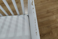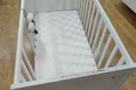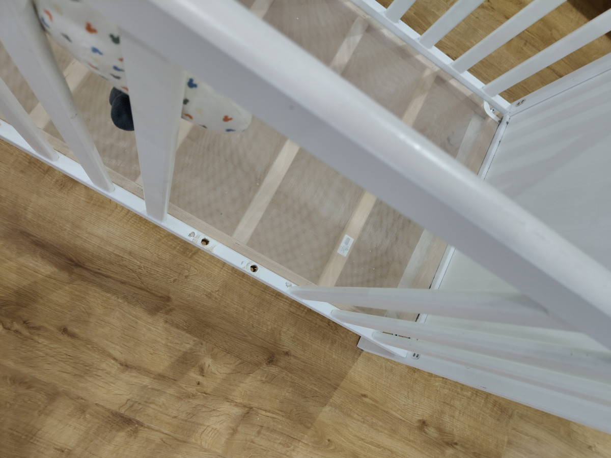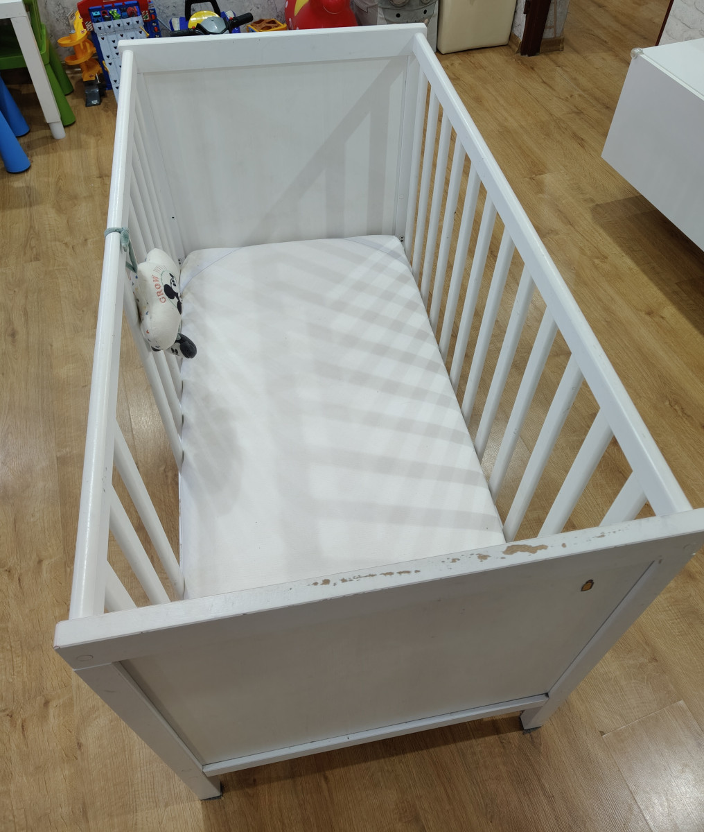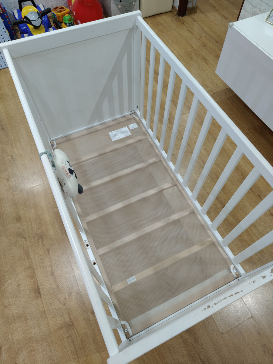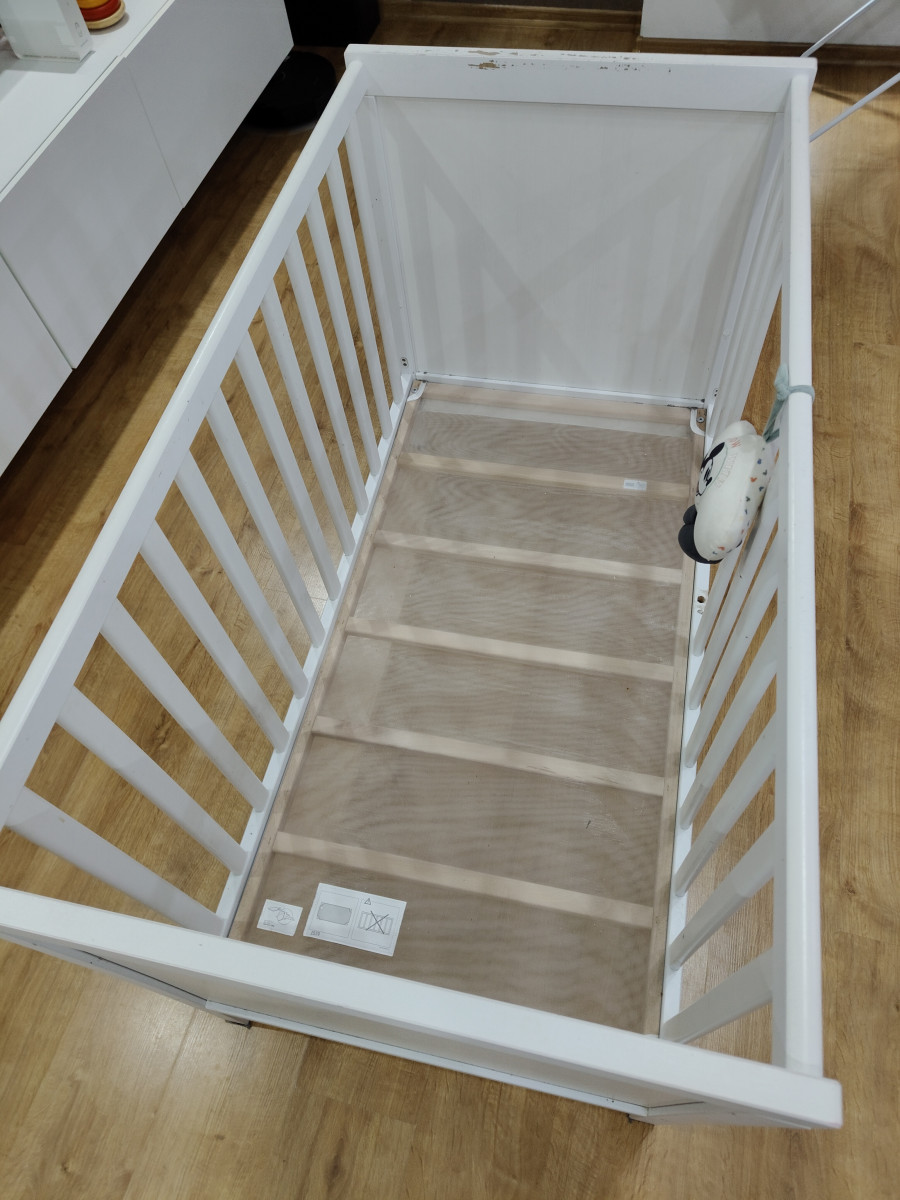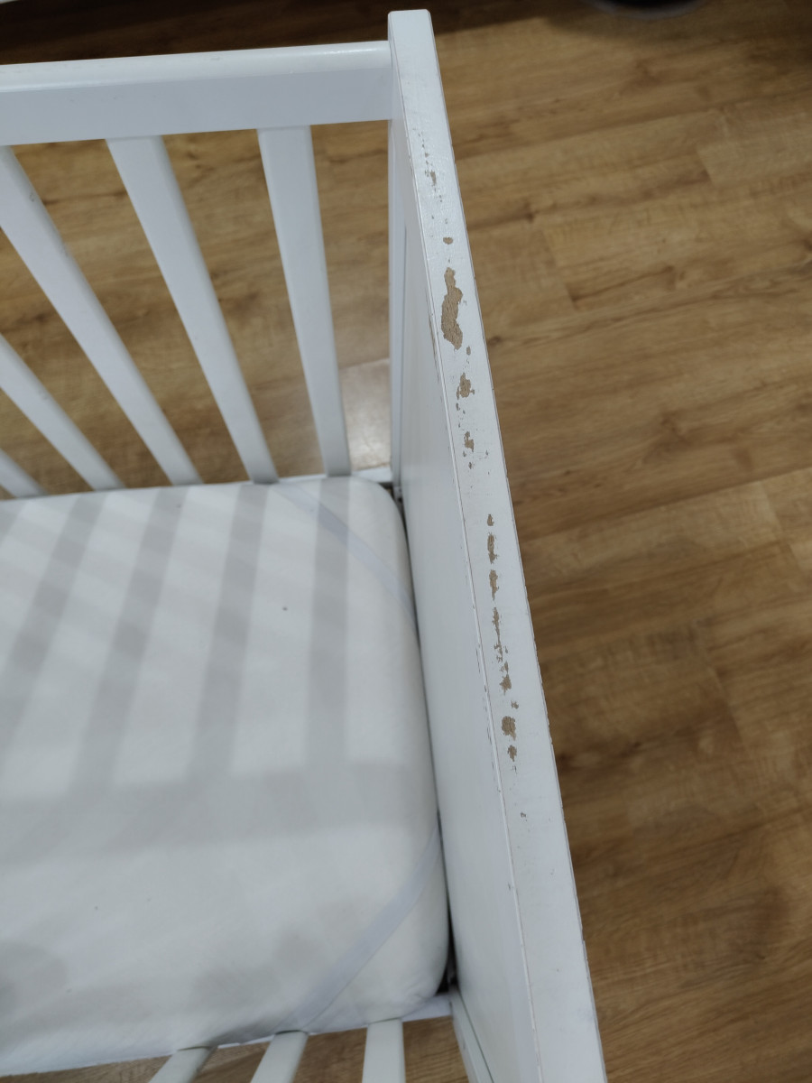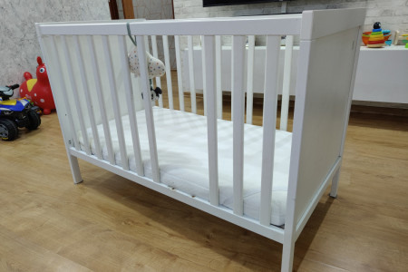 Sprzedam łóżeczko niemowlęce\dziecięce 120 na 60 z materacem. Dwa poziomy wysokości. Dwa szczebelki wycięte , do samodzielnego montażu. Dodatkowo możliwość zdjęcia boku i zamontowania deski żeby łóżeczko było jako dostawka. Technicznie łóżko w bardzo dobrym stanie, jedynie wizualnie według uznania do odmalowania, dziecko pogryzło jeden bok (widać na zdjęciu). Materac w stanie bardzo dobrym.