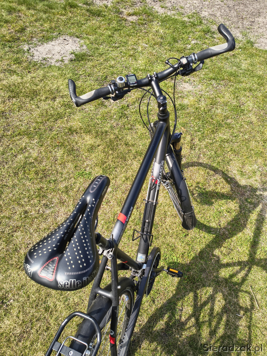 Stan: Rower zadbany, garażowany, używany rekreacyjnie. Wszystko działa perfekcyjnie – napęd cichy, hamulce bardzo skuteczne. Wizualnie prezentuje się bardzo dobrze.
