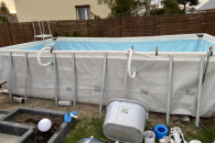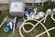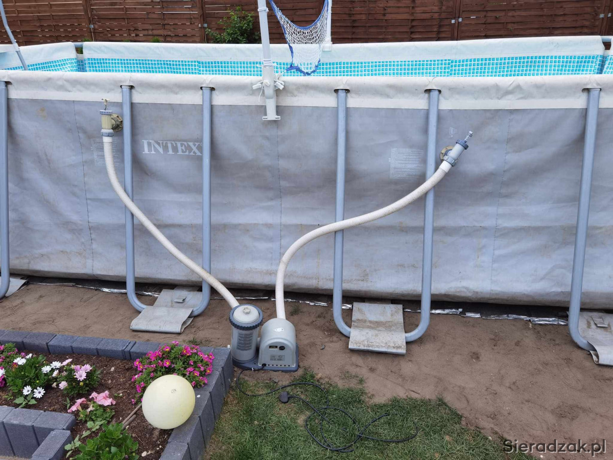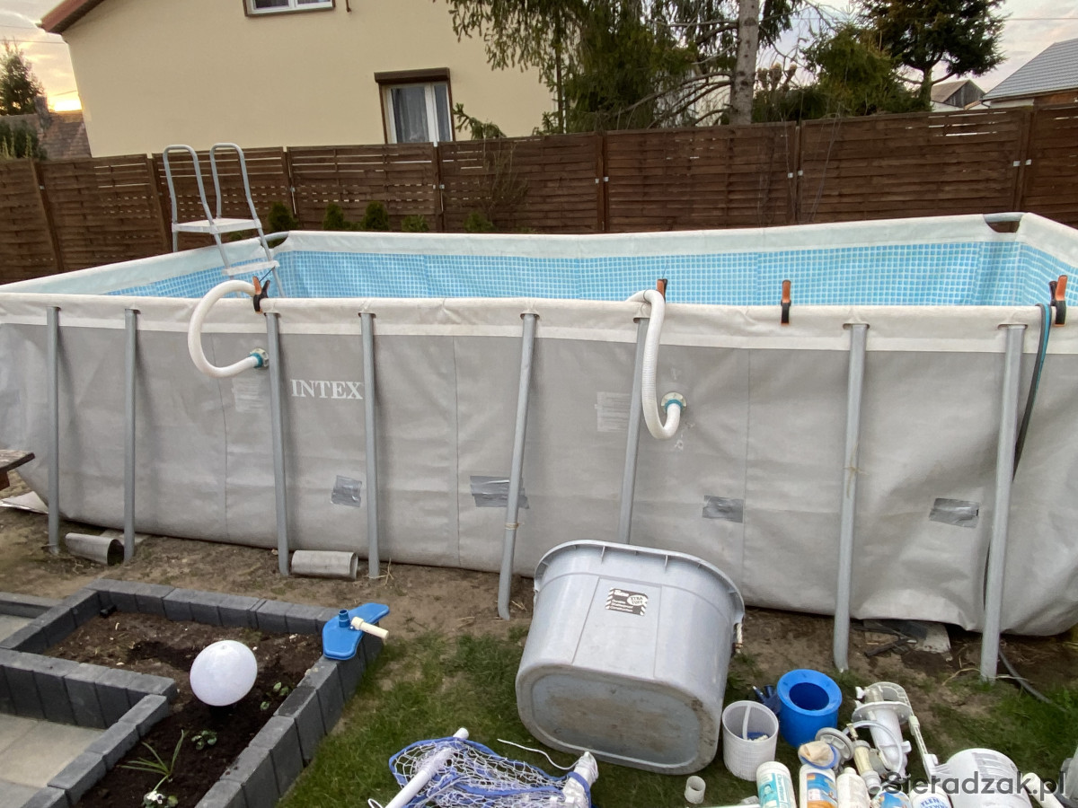 Sprzedam używany basen stelażowy Inex pojemność około 15tys litrów . Z powodu zmiany infrastruktury ogrodu muszę pozbyć się basenu. Basen nie jest idealny cena podlega negocjacji . Zestaw zawiera chemię praktycznie całą kupioną za ok 200zł oraz akcesoria basenowe widoczne na zdj wraz z pompą . Za dopłatą sprzedam nową pompę widoczna na ostatnim zdj pompa nowa kupiona w tamtym sezonie użyta raz więc jest nowa. Posiadam również panele na słońce do ogrzewania wody w basenie . Więcej informacji prriv. 691.616..983