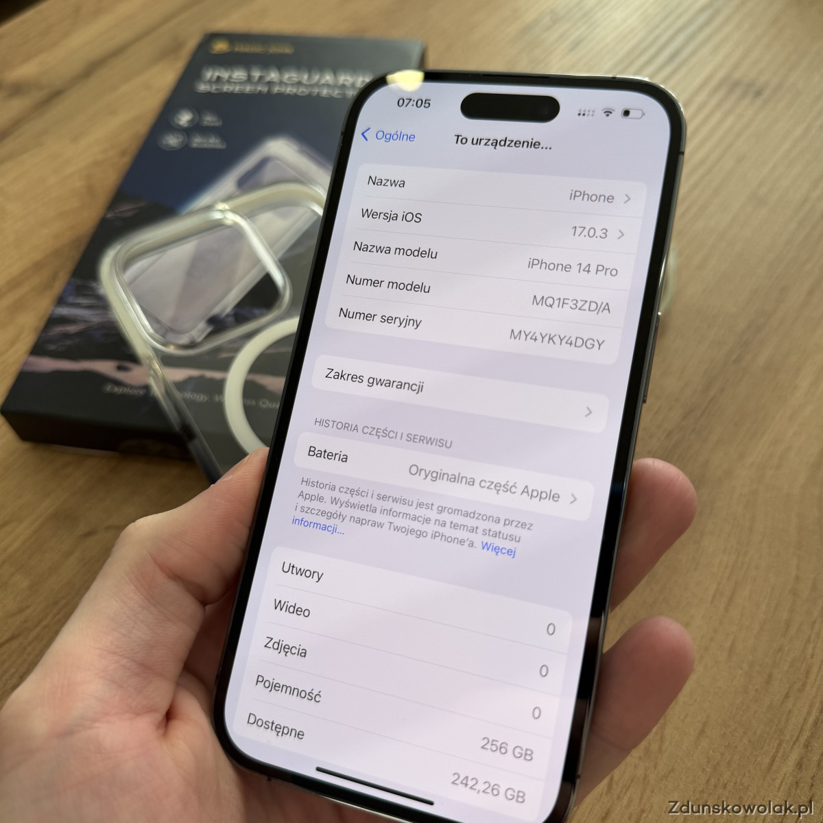 iPhone 14pro w kolorze głębokiego fioletu z wbudowaną pamięcią 256GB. Telefon używany, bateria została wymieniona na nową w iSpot Łódź 3 marca 2026. Na baterię obowiązuje gwarancja producenta 3 miesiące + 2 lata rękojmi w iSpot.