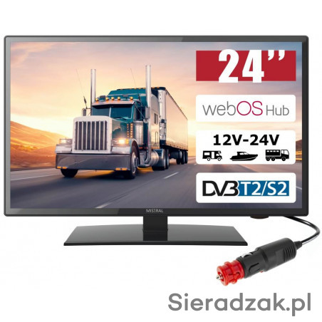 Sprzedam nowy telewizor Mistral MI-TV238FSL TV LCD 24'' 12V 24V Smart webOS LED DVB-T do samochodu, TIRa, przyczepy kempingowej na działkę.