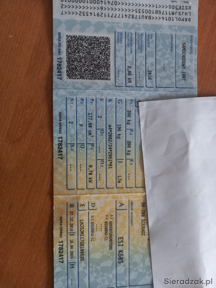 Sprzedam kłada, rok produkcji 2016,zarejestrowany, opłacony więcej informacji pod numerem telefonu 731 622 288.