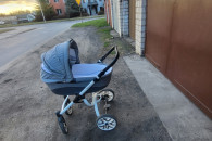Wózek 2w1 marki Bebetto w kolorze szarym Używany, w dobrym stanie. Solidna konstrukcja, lekki i łatwy w prowadzeniu. Idealny do codziennego użytku dla malucha.