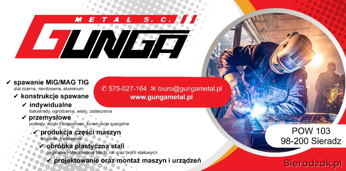CV proszę kierować na biuro@gungametal.pl lub bezpośrednio w siedzibie 98-200 Siersdz, P.O.W. 103