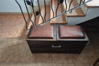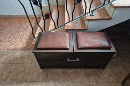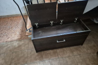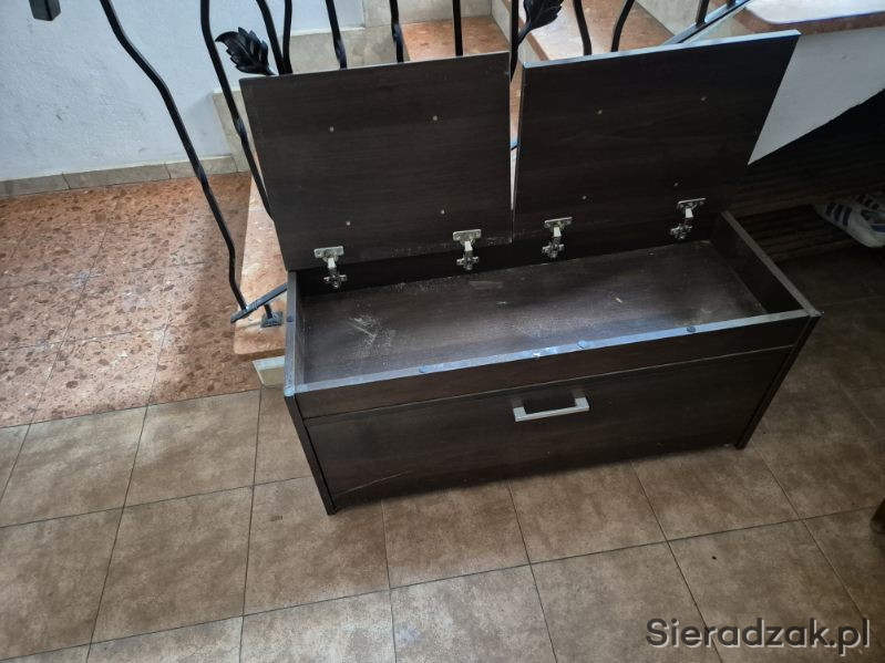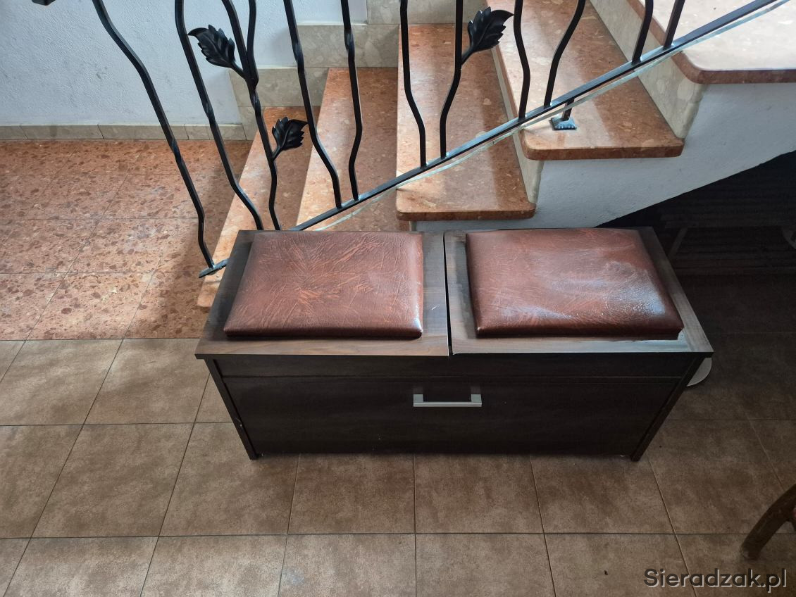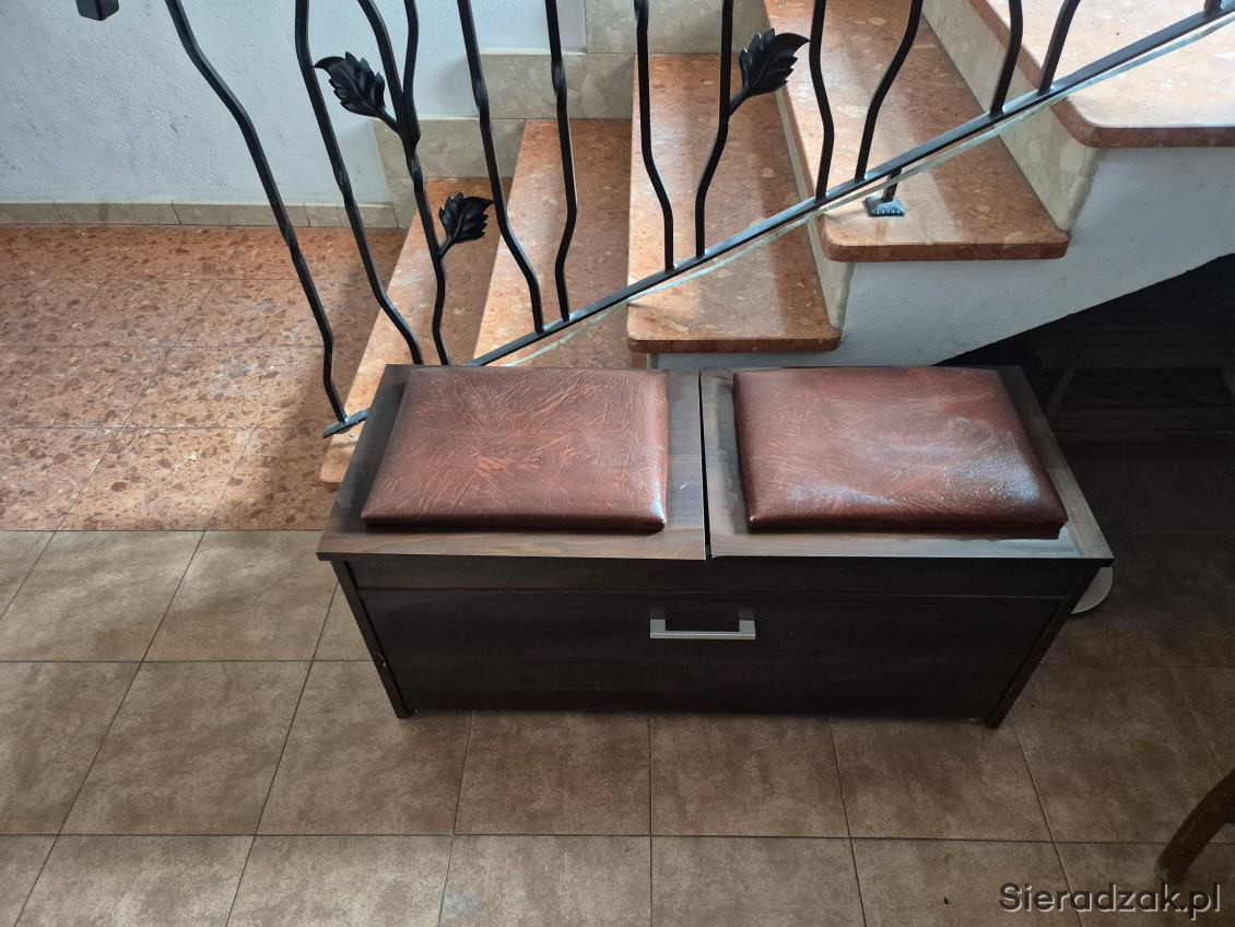 Szafka na buty. Siedziska otwierane do góry w których można przechowywać pasty i szczotki do butów.