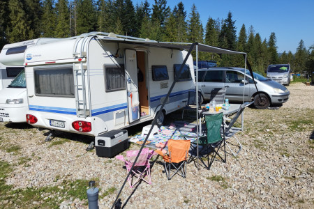 Przyczepa szczelna bez zacieków i przykrych zapachów 3 szyberdachy rolety i moskitiery w wszystkich oknach maksymalnie można spać w 6 osób używana prywatnie od wiosny do jesieni trzymana pod wiatą do przyczepy jest klimatyzacja sprzedawana za dodatkową opłatą dla konkretnego nabywcy cena atrakcyjna.