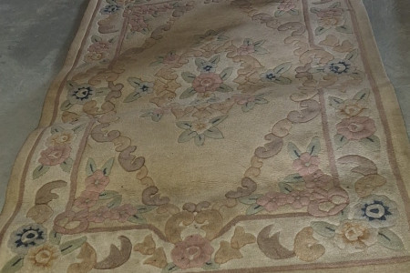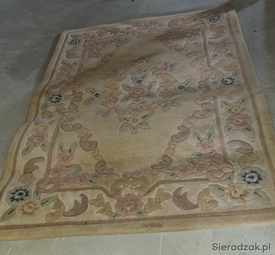 Ręcznie wiązany wełniany dywan chiński, często określany jako dywan typu Aubusson ze względu na charakterystyczne wzory kwiatowe.
