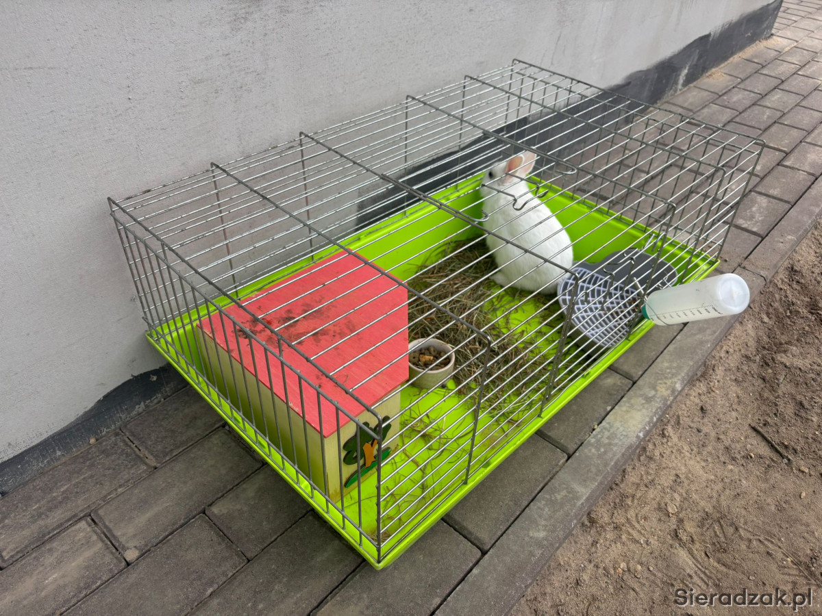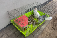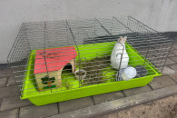 Klatka wyposażona w kuwetę poidło i miseczkę