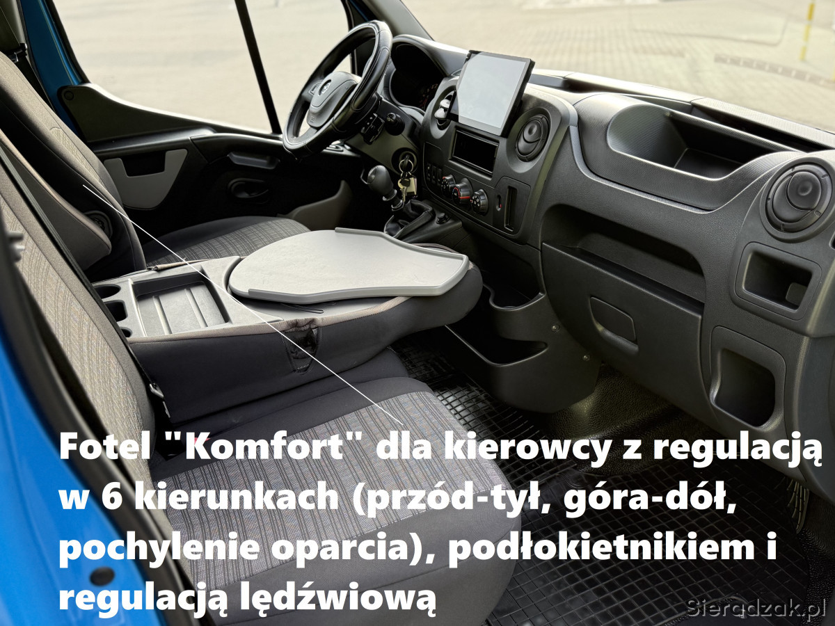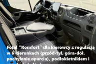 - Fotel "Komfort" dla kierowcy z regulacją w 6 kierunkach (przód-tył, góra-dół, pochylenie oparcia), podłokietnikiem i regulacją lędźwiową