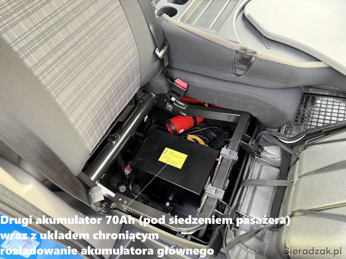 - Drugi akumulator 70Ah (pod siedzeniem pasażera) wraz z układem chroniącym rozładowanie akumulatora głównego
