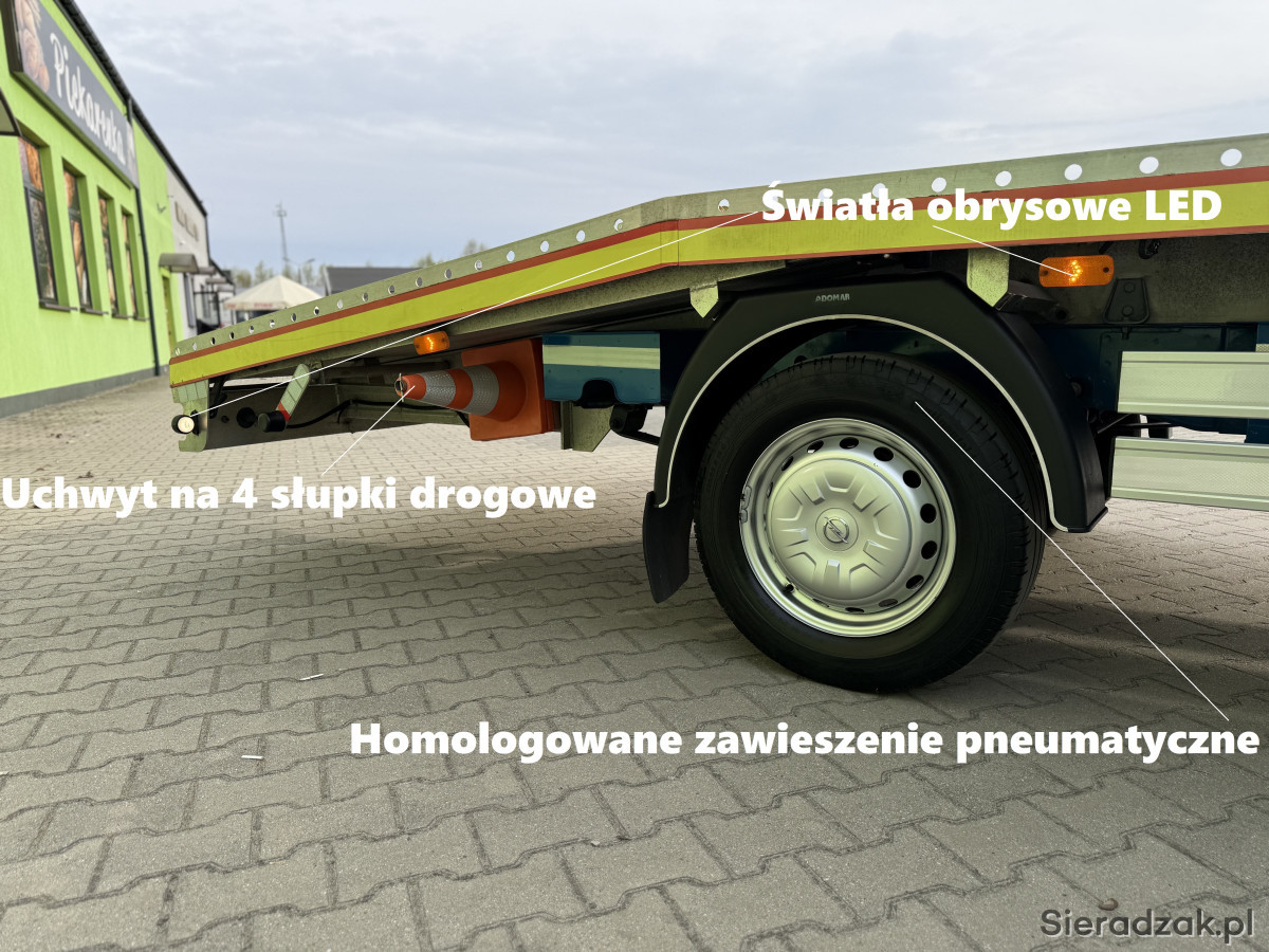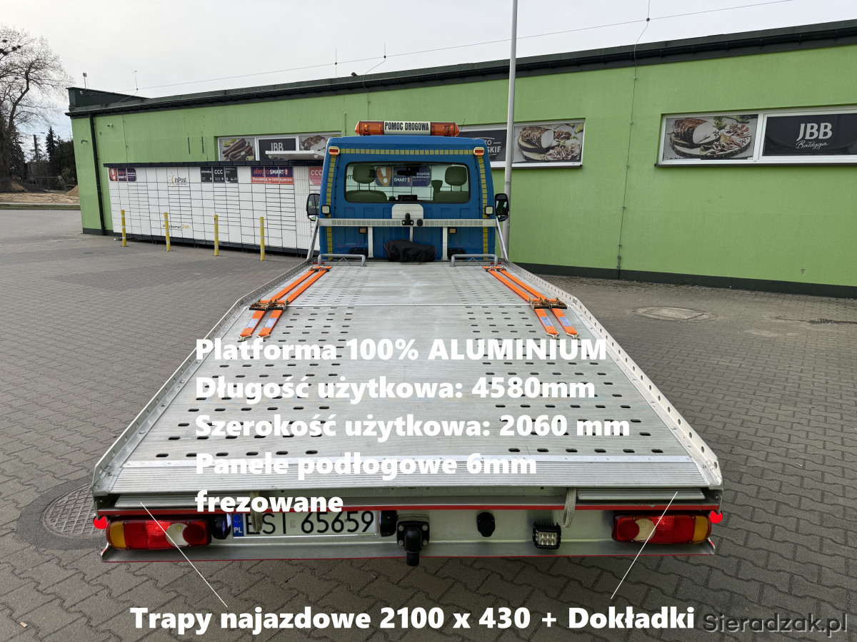 - Długość zewnętrzna platformy: 4900mm, długość użytkowa 4580mm