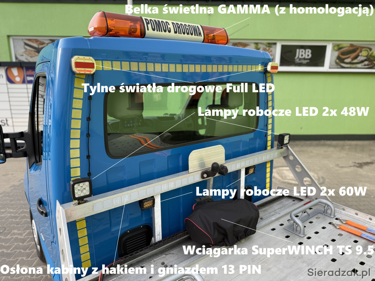 - Osłona kabiny na wysokości 450mm + hak holowniczy z gniazdem 13 PIN