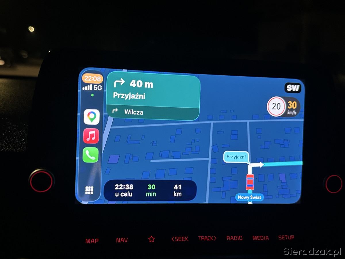 Wnętrze czyste i zadbane, nie palono w nim papierosów, jest wygodne i ładnie wystylizowane. Wszystko działa jak należy, nic nie stuka i nie trzeszczy (pachnie jeszcze nowością). Obsługa radia, multimediów, komputera pokładowego – W JĘZYKU POLSKIM.